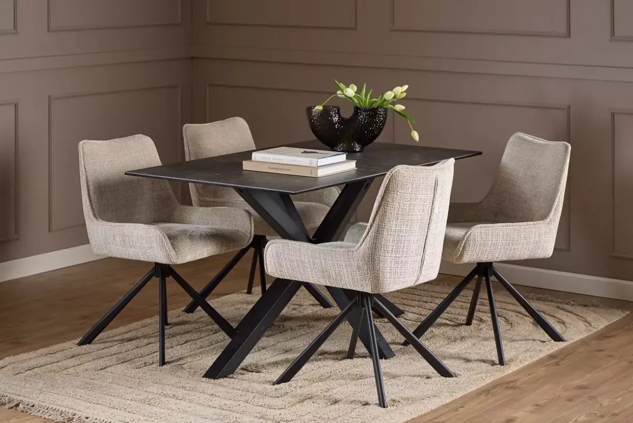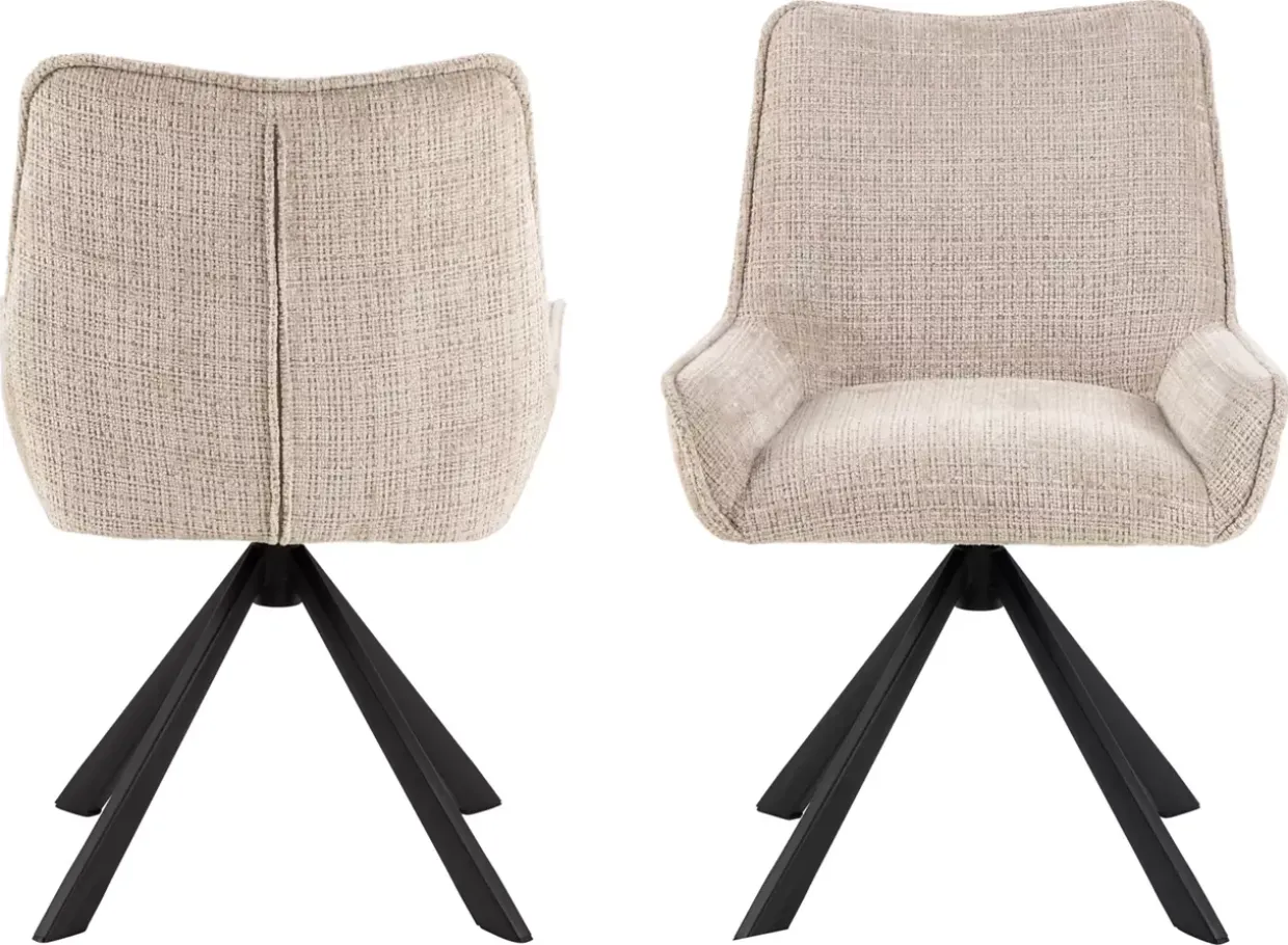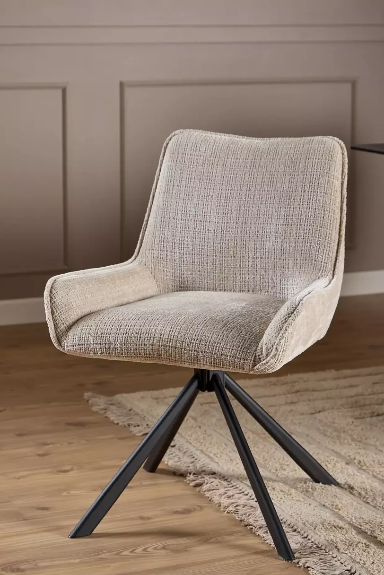 Ein markantes Highlight: Der Eddie Esszimmerstuhl ist drehbar und bietet somit eine flexible Nutzung in Ihrem Essbereich. Seine moderne Ausstrahlung unterstreicht die zeitgemäße Ästhetik Ihres Zuhauses. Die Kombination aus Stoff und Metall verleiht dem Stuhl nicht nur eine ansprechende Optik, sondern auch Stabilität und Langlebigkeit.