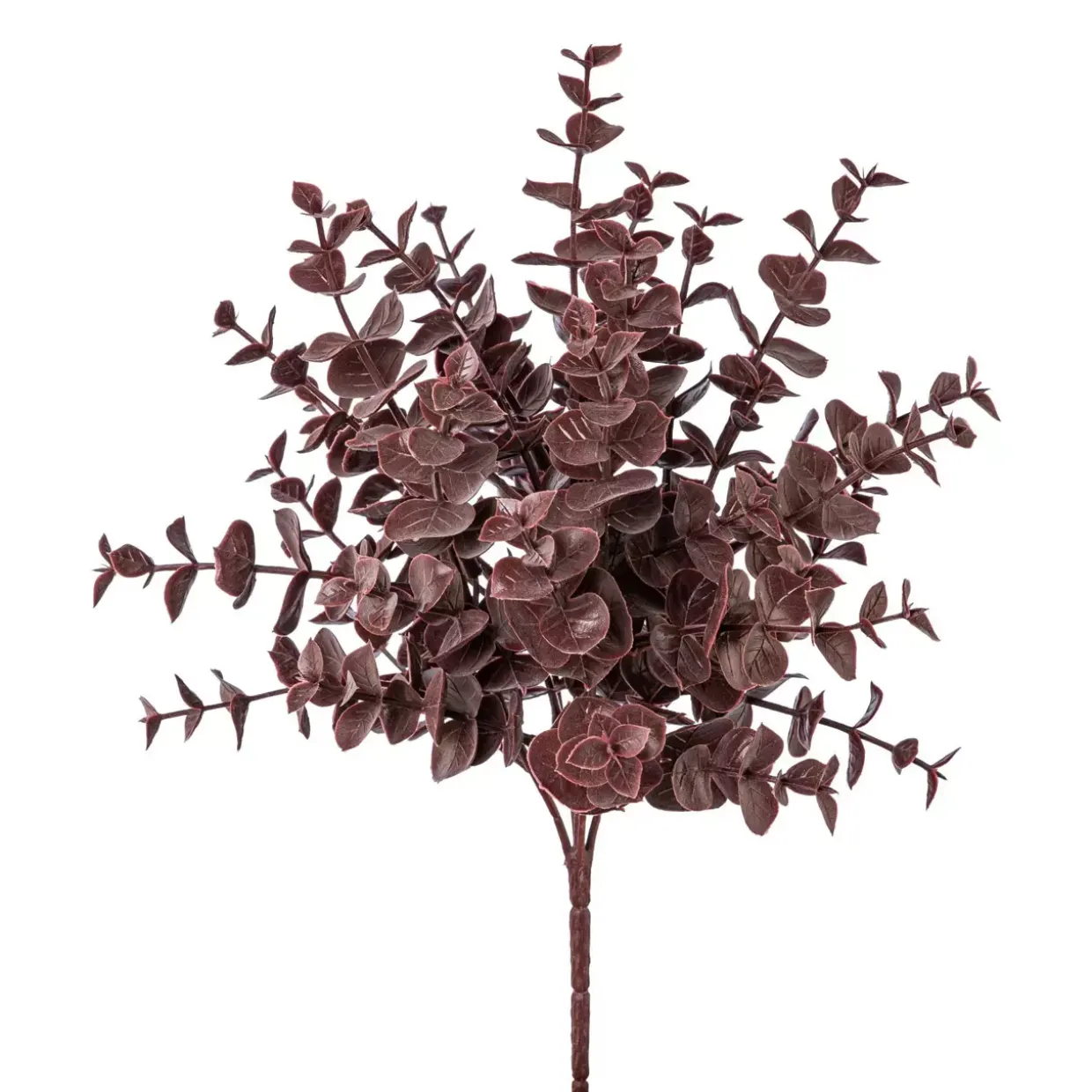 Entdecken Sie den modernen Eukalypthusbusch in einer eleganten bordeauxroten Farbgebung. Diese stilvolle Dekoration ist aus hochwertigem Kunststoff gefertigt und überzeugt durch ihre langlebige Qualität und pflegeleichte Beschaffenheit. Der Eukalypthusbusch ist mit einer Höhe von 31 cm ideal geeignet, um in jedem Raum einen frischen und natürlichen Akzent zu setzen.