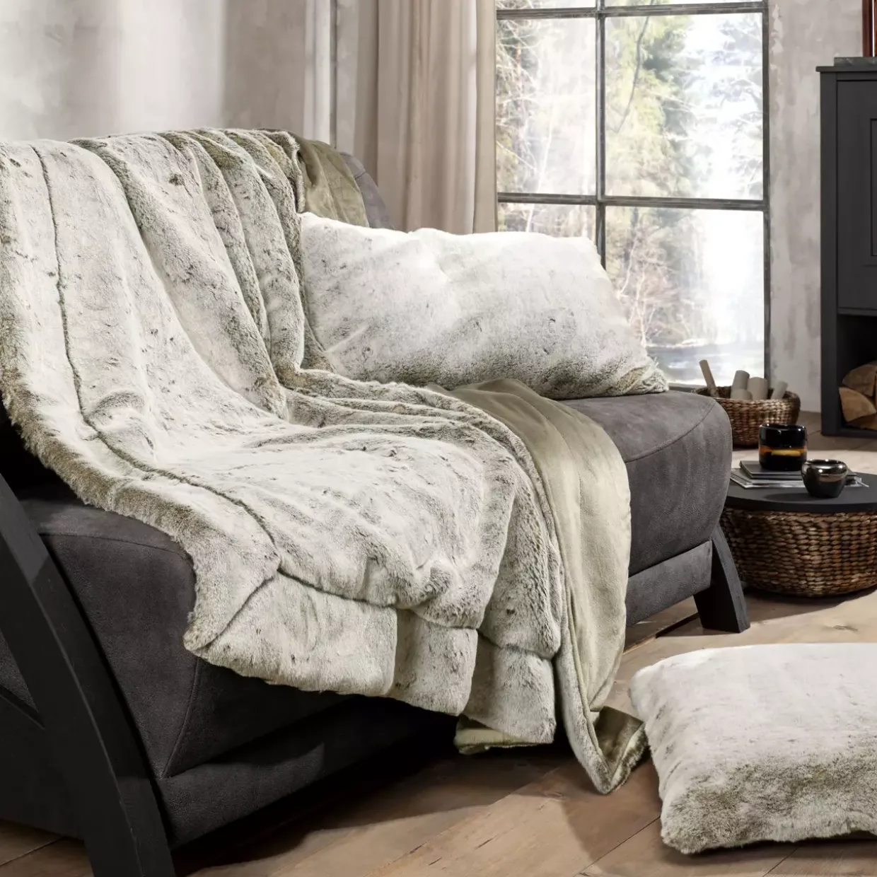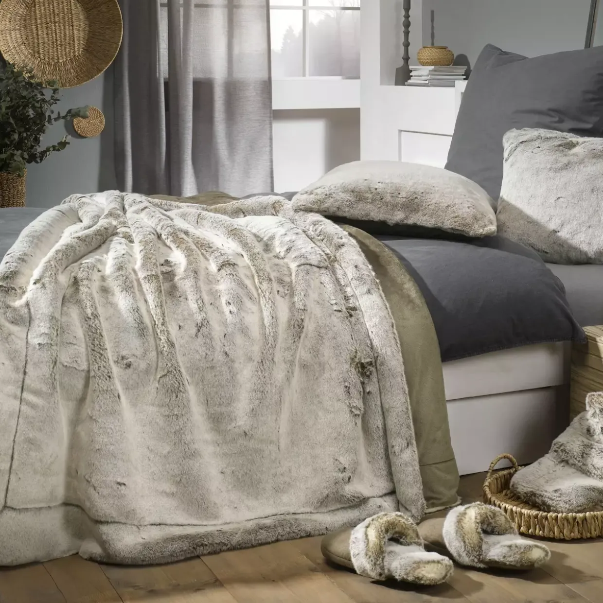 150×200 cm – taupe -; Vorderseite: 800 gsm Acryl-Fellimitat; Rückseite: 200 gsm Micromink;