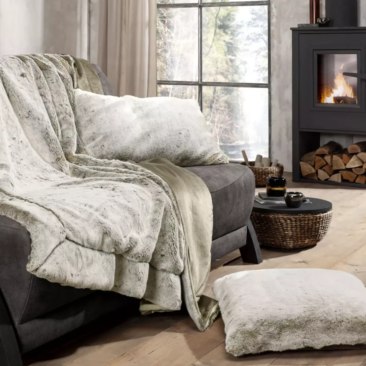 48×48 cm – taupe -; Vorderseite: 800 gsm Acryl-Fellimitat; Rückseite: 200 gsm Micromink; Füllung: 450 g Polyester