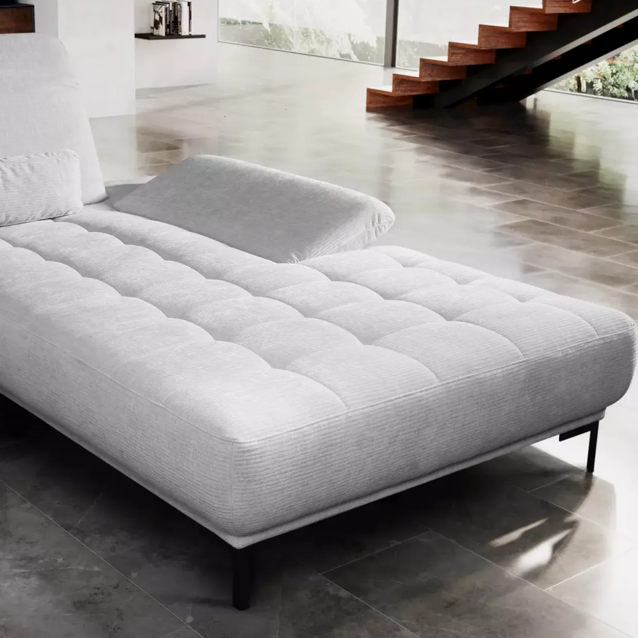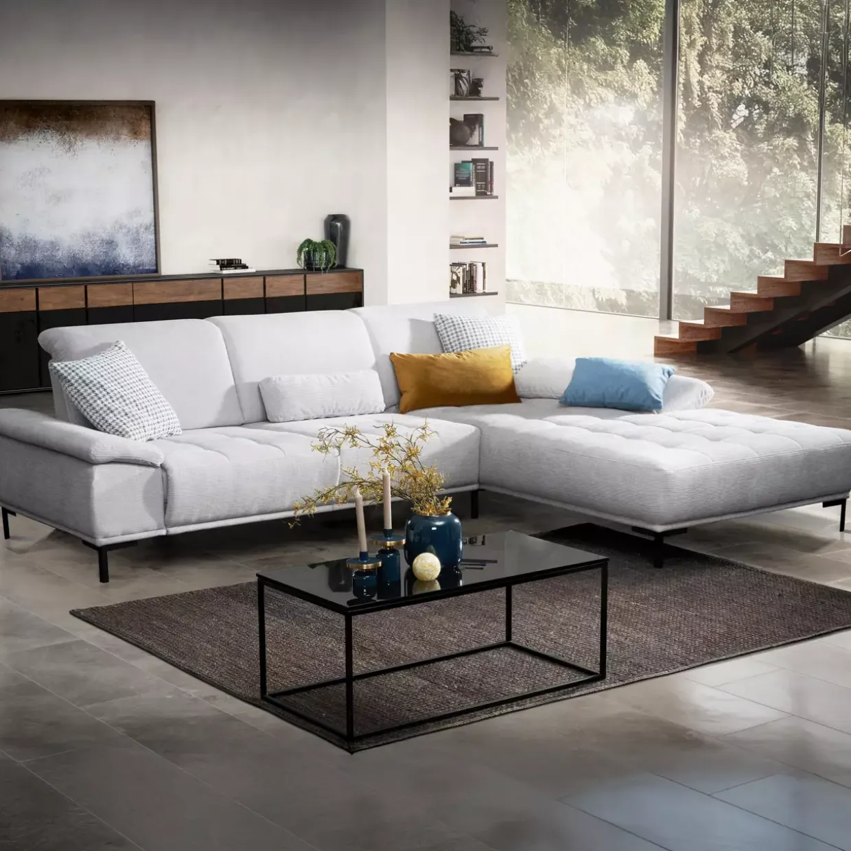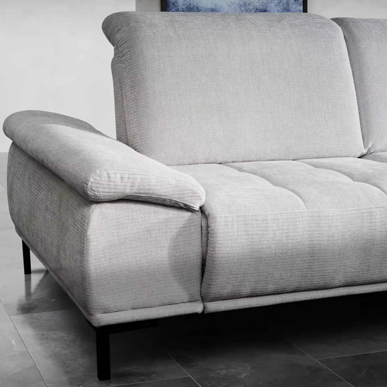Die moderne Polstergarnitur beeindruckt durch ihre harmonische Kombination aus Stoff und Metall. Die sorgfältig gewählte Farbpalette, bestehend aus sanften Tönen, verleiht jedem Raum eine zeitlose Eleganz. Eine funktionale Armteilfunktion sorgt für zusätzlichen Komfort, während die motorische Relaxfunktion auf der rechten Seite für entspannte Stunden sorgt.