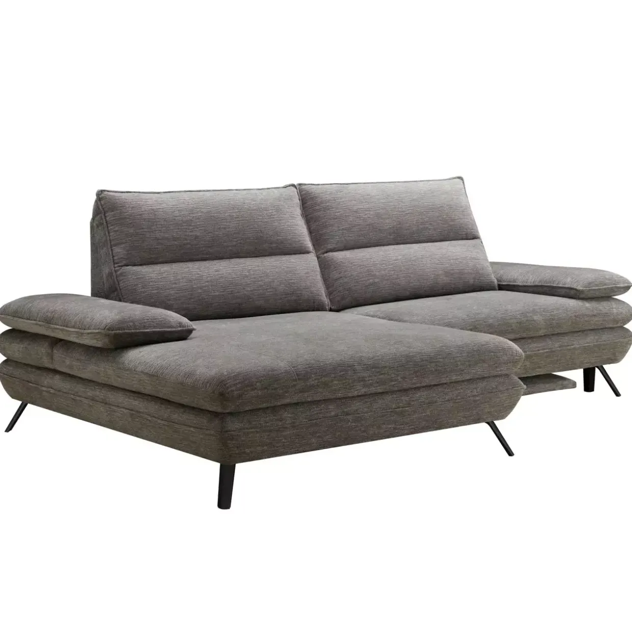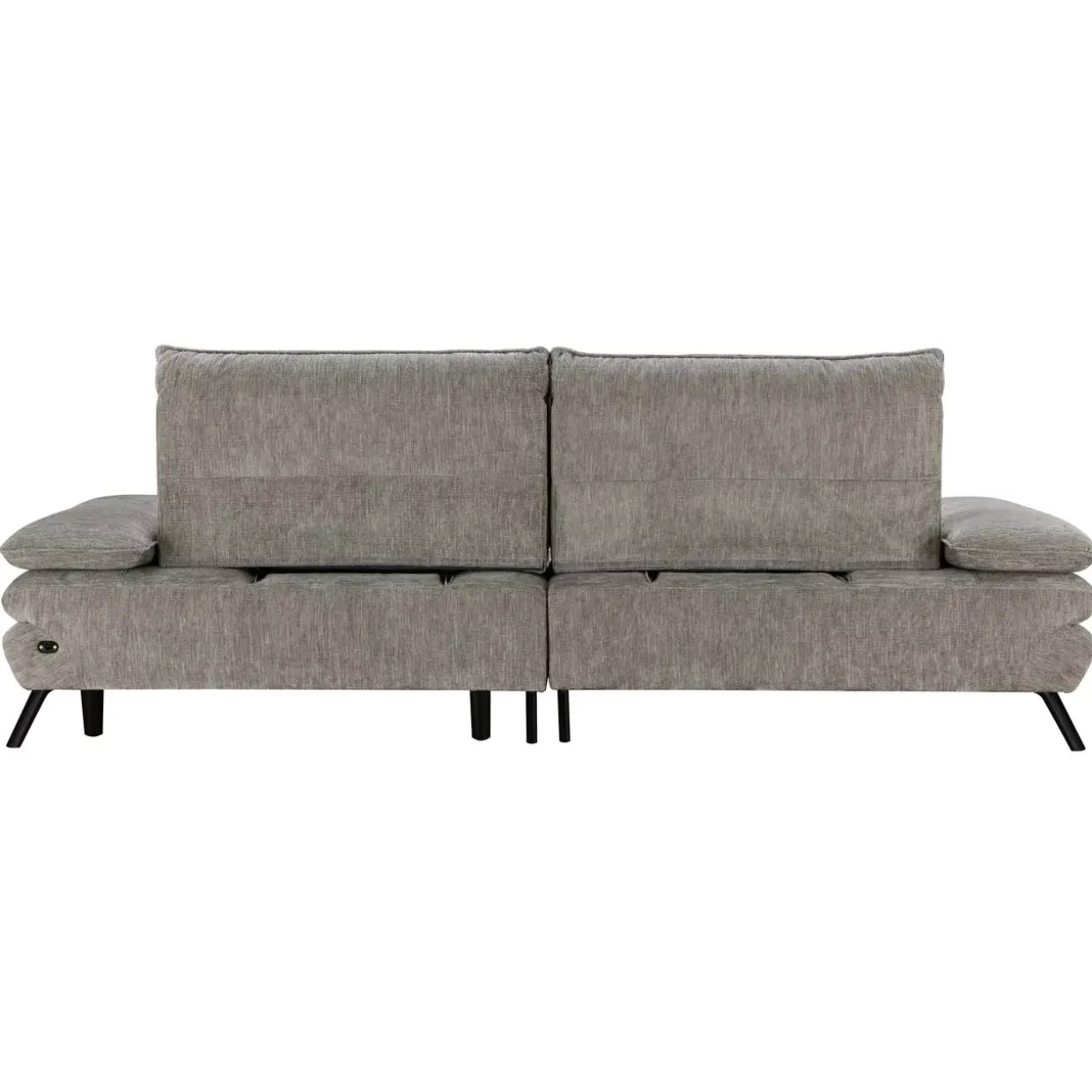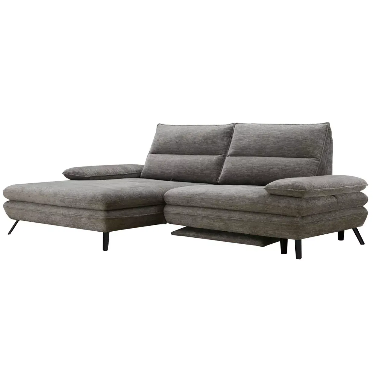 Ein Hauch von Eleganz durchzieht Ihr Wohnzimmer mit diesem Ecksofa in F-A Hellgrau. Das Zusammenspiel von Textil, Holz, Holzwerkstoff und Metall verleiht dem Möbelstück nicht nur eine beeindruckende Optik, sondern auch eine bemerkenswerte Stabilität. Komfort steht im Vordergrund: Die Armteilverstellung sowohl links als auch rechts ermöglicht eine individuelle Anpassung an Ihre Bedürfnisse. Mit der integrierten elektrischen Fußstütze erleben Sie ein unvergleichliches Entspannungserlebnis. Die Relax-Rückenlehne, die manuell über die Push-Back-Funktion bedient werden kann, ergänzt dieses Wohlfühlambiente, indem sie Ihnen die Möglichkeit bietet, den Rückenbereich nach persönlichen Vorlieben zu justieren. Der Echtbezug an der Rückseite des Sofas sorgt nicht nur für eine hochwertige Anmutung, sondern unterstreicht auch die Langlebigkeit des Möbelstücks. Diese Kombination aus Funktionalität und stilvollem Design macht das Ecksofa zu einem idealen Begleiter in Ihrem Zuhause. Ein stilvolles Möbelstück, das sich nahtlos in Ihr Interieur einfügt und gleichzeitig höchsten Komfort bietet – dieses Ecksofa ist die perfekte Wahl für all jene, die sowohl Design als auch Funktionalität schätzen. Gönnen Sie sich den Luxus und die Vielseitigkeit, die dieses Sofa bietet.