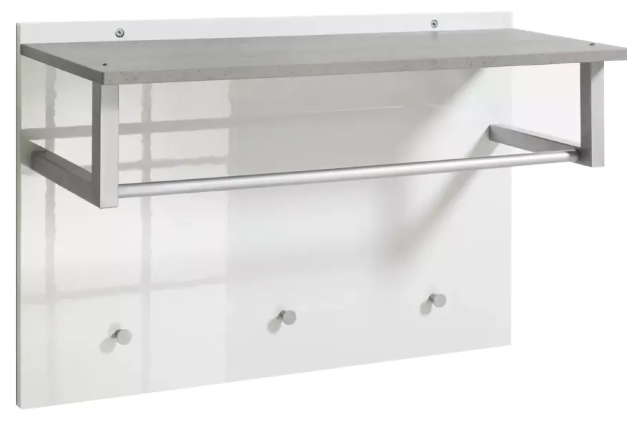 Die 1-Hutablage im Beton Dekor verleiht dieser Garderobe einen modernen und zugleich urbanen Touch. Diese gelungene Kombination aus stilvollem Design und Funktionalität macht sie zur idealen Ergänzung für Ihr Zuhause. Die Garderobe präsentiert sich in edlem weißem Hochglanz, was für eine zeitlose Eleganz sorgt und sich harmonisch in verschiedene Einrichtungsstile einfügt.