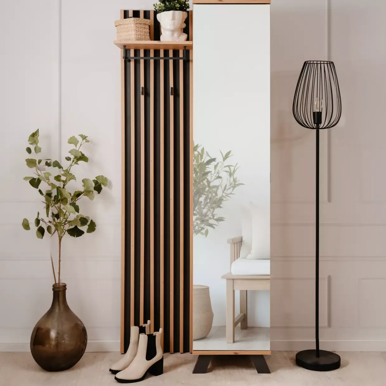 Die Medan Garderobe ist ein funktionales Möbelstück, das mit seinem modernen Design und den sorgfältig ausgewählten Materialien überzeugt. Eine durchdachte Wahl für alle, die Wert auf Qualität und Ästhetik legen.