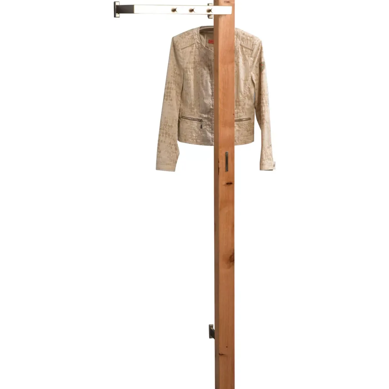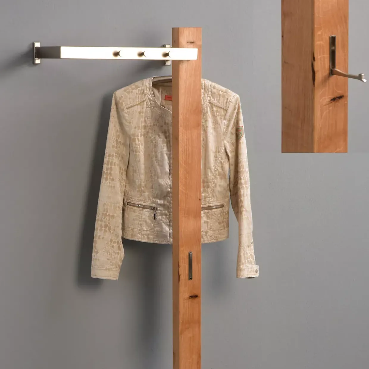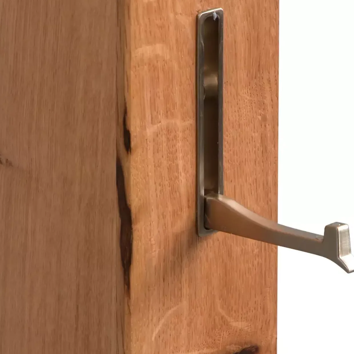 Mit einer geölten Oberfläche versehen, behält das Holz seinen natürlichen Glanz und wird gleichzeitig vor äußeren Einflüssen geschützt. Die Kombination aus edlem Holz und Edelstahloptik bei Bügel- und Hakenmaterial setzt stilvolle Akzente und verspricht Langlebigkeit. Edelstahl, geschätzt für seine Widerstandsfähigkeit und schlichte Eleganz, ergänzt die natürliche Schönheit der Wildeiche perfekt.