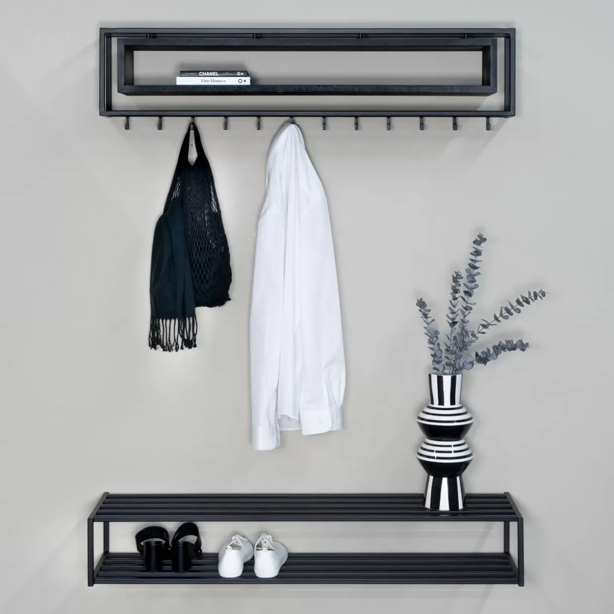 Metall, genauer gesagt Stahl, sorgt für die notwendige Festigkeit und verleiht der Konstruktion eine markante Optik. Das Design ist nicht nur ansprechend, sondern auch durchdacht, um den Anforderungen des Alltags gerecht zu werden. Dank der modernen Gestaltung fügt sich die Garderobe harmonisch in verschiedene Wohnkonzepte ein.
