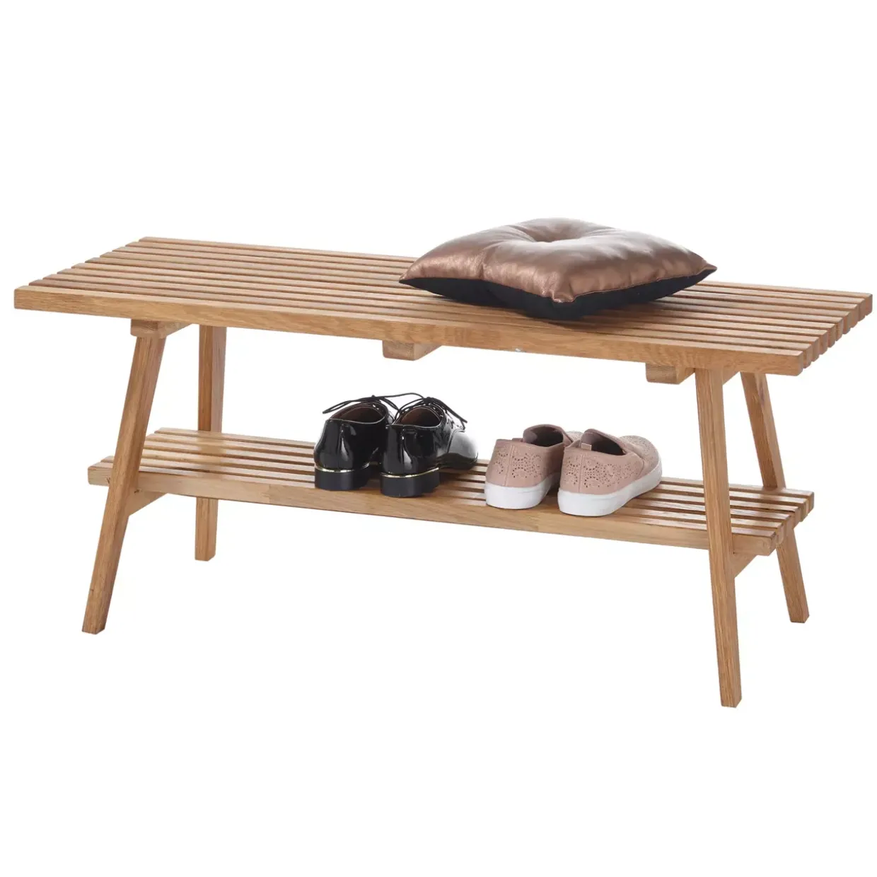Die Garderobenbank „Alwar“ im beliebten skandinavischen Look lässt Ihren Eingangsbereich besonders gemütlich und einladend wirken. Die schmalen Holzbalken aus Eiche massiv geölt treffen genau den Zeitgeist des angesagten Scandi chic. Die praktische Sitz- und Ablageflächen machen die Bank zu einem vielseitigen und funktionellen Möbelstück.Eiche natur verleiht jedem Raum eine zeitlose Eleganz. Die Garderobenbank Alwar verkörpert diesen klassischen Stil in Perfektion. Mit ihrer natürlichen Holzmaserung und der geölten Oberfläche strahlt sie eine warme und einladende Atmosphäre aus. Die Wahl der Holzart ist entscheidend für die Langlebigkeit und Stabilität eines Möbelstücks. Eiche ist bekannt für ihre Robustheit und Beständigkeit, was diese Garderobenbank zu einer wertvollen Investition für Ihr Zuhause macht. Zwei Stück dieses Modells bieten nicht nur ausreichend Sitzgelegenheit, sondern auch eine harmonische Ergänzung für jeden Eingangsbereich.Eine Garderobenbank sollte nicht nur funktional sein, sondern auch ästhetisch ansprechend. Das Modell Alwar verbindet beides auf eindrucksvolle Weise. Sein konventionelles Design passt sich mühelos verschiedenen Einrichtungsstilen an und bietet gleichzeitig praktischen Nutzen. Ob zum Anziehen von Schuhen oder als Abstellfläche für Taschen, dieser Alleskönner erfüllt vielfältige Bedürfnisse.Die geölte Oberfläche sorgt dafür, dass das Holz atmen kann und seine natürliche Schönheit über Jahre hinweg bewahrt bleibt. Dies macht die Pflege einfach und unkompliziert. Eine Garderobenbank wie Alwar ist nicht nur ein Möbelstück, sondern ein Statement für Qualität und Stilbewusstsein.