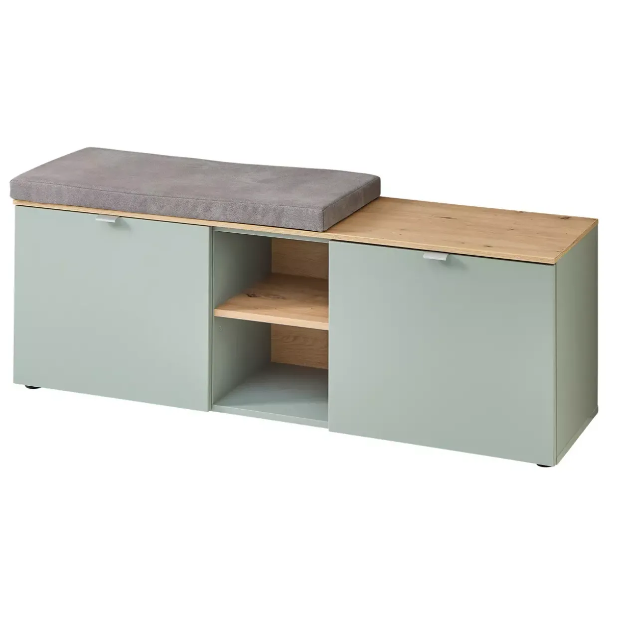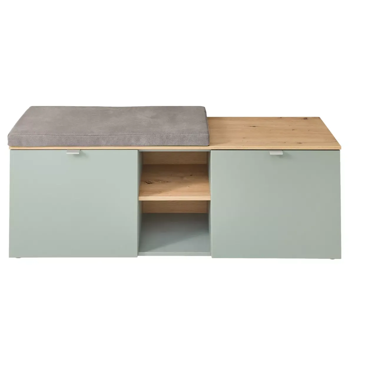 Ein besonderes Highlight ist das inkludierte Sitzkissen, das für zusätzlichen Komfort sorgt und das stilvolle Erscheinungsbild der Bank unterstreicht. Die beiden Türen der Solobank sind mit einem Soft-Close-System ausgestattet, das ein leises und sanftes Schließen ermöglicht und so für eine lange Lebensdauer sorgt.