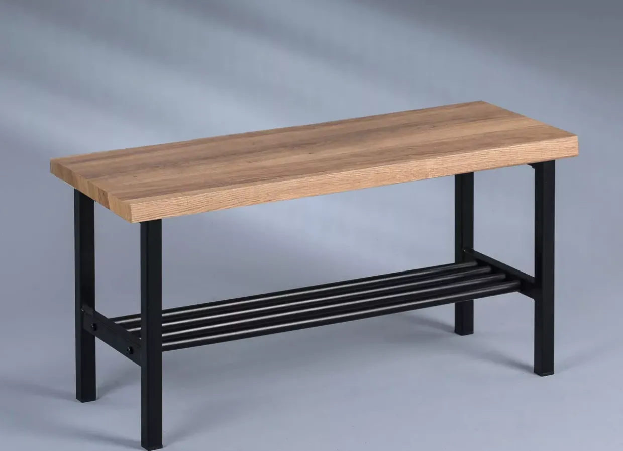 Diese Garderobenbank ist aus hochwertiger Eiche gefertigt, die für ihre Widerstandsfähigkeit und Schönheit bekannt ist. Die Oberfläche der Bank ist sowohl foliert als auch lackiert, was nicht nur für eine elegante Optik sorgt, sondern auch das Holz schützt und seine Lebensdauer verlängert. Die dunklen Akzente aus schwarzem Stahl verleihen der Bank eine moderne Note und ergänzen die natürliche Holzmaserung perfekt. Die sorgfältige Verarbeitung und das zeitlose Design machen dieses Möbelstück zu einem unverzichtbaren Element in Ihrem Zuhause.