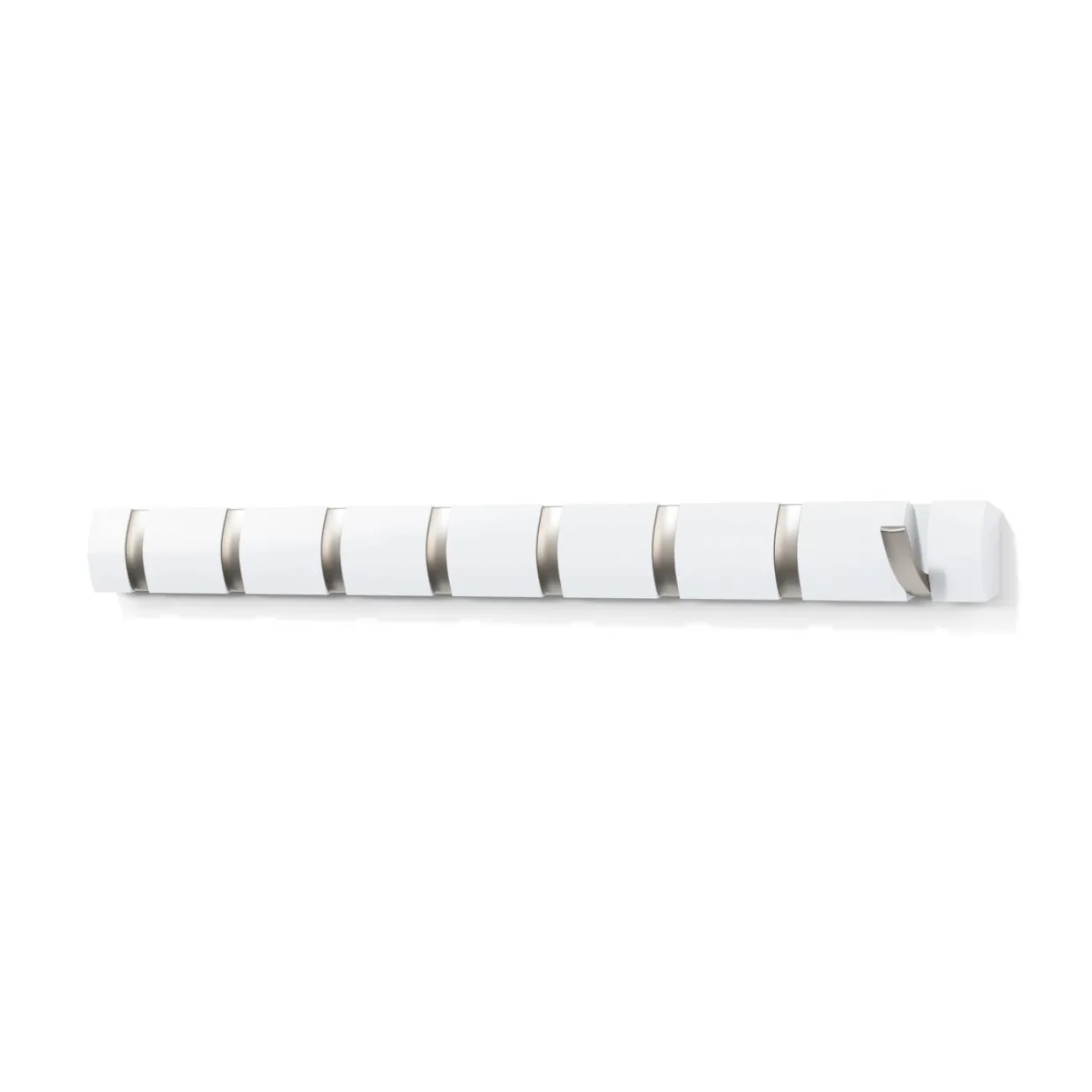 Eine Garderobenleiste ist mehr als nur ein funktionales Objekt; sie ist ein Ausdruck von persönlichem Stil und Organisation. Platzsparend und dennoch auffallend, fügt sie sich nahtlos in moderne Wohnkonzepte ein. Die dezente Farbgebung in Holz und Weiß lässt sich leicht mit verschiedenen Einrichtungsstilen kombinieren und bietet eine harmonische Ergänzung zu bestehenden Möbelstücken.