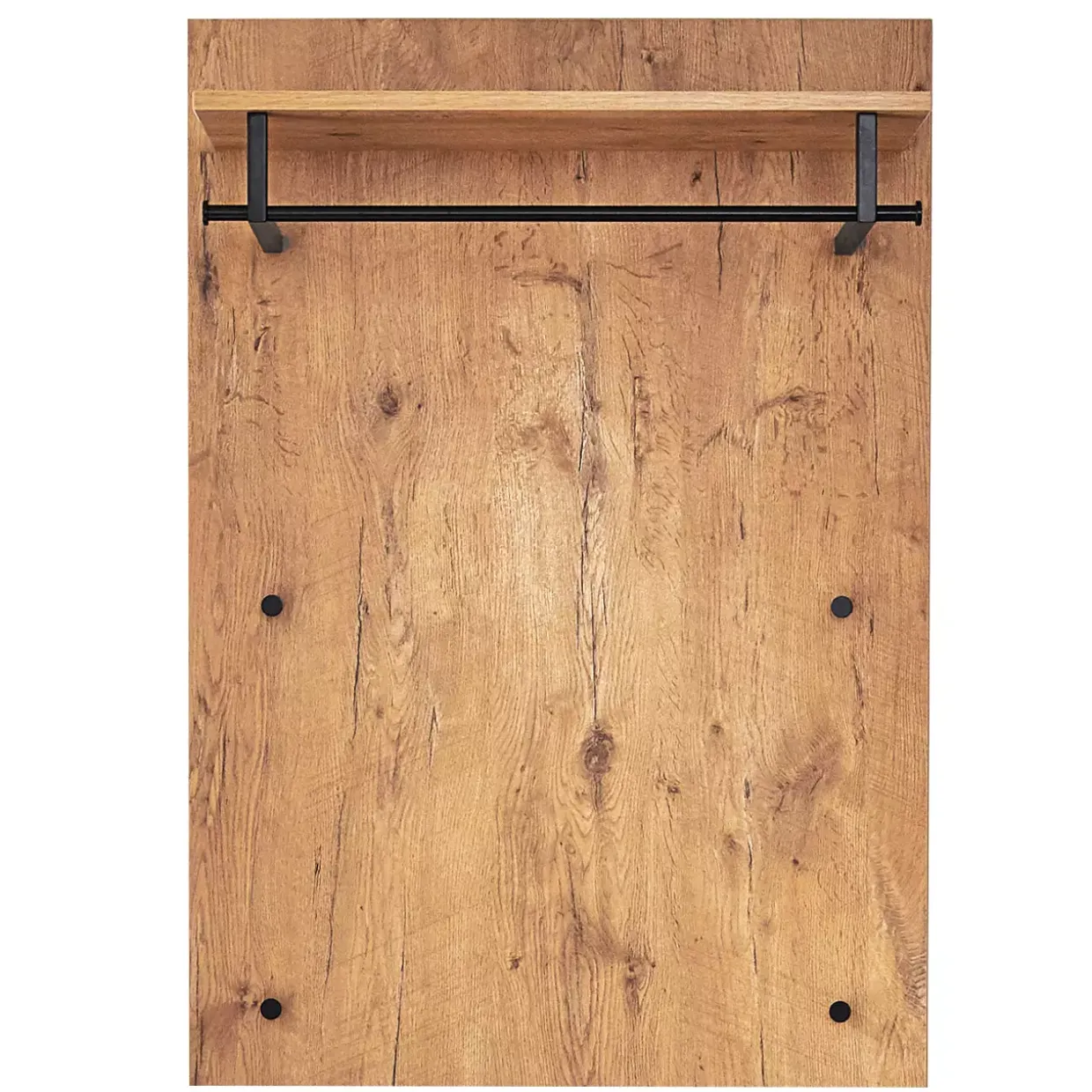 Wildeiche Nachbildung verleiht dem Modell Faro eine zeitlose Eleganz, die sich harmonisch in moderne Wohnkonzepte einfügt. Das Garderobenpaneel, gefertigt aus robustem Holzwerkstoff, vereint Funktionalität und ästhetische Raffinesse. Die klare Linienführung und die schnörkellose Gestaltung betonen den modernen Stil und schaffen eine einladende Atmosphäre in Ihrem Eingangsbereich.