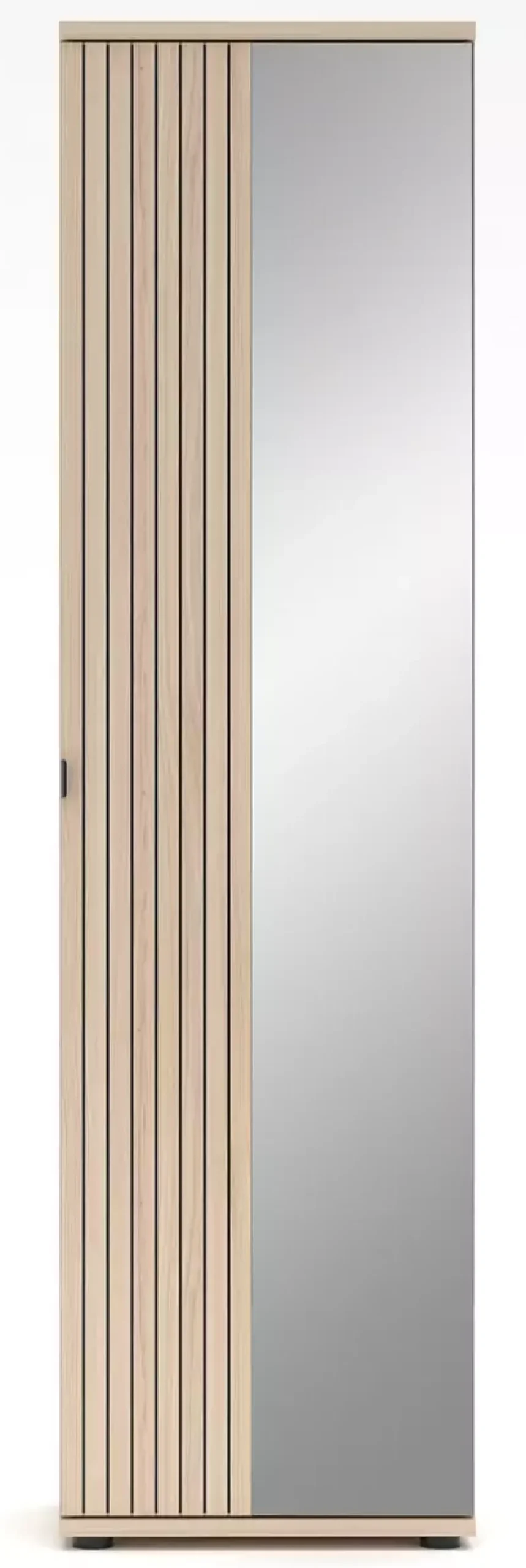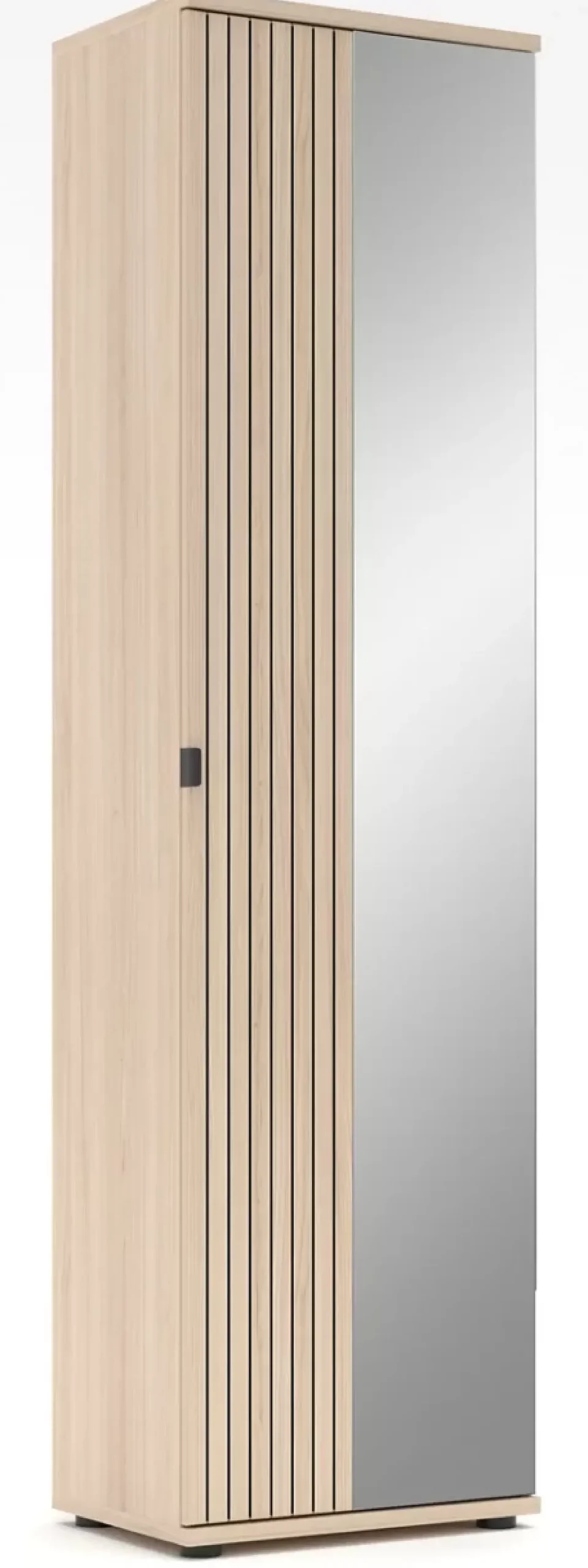 Ein weiteres Highlight ist der integrierte Wandspiegel, der nicht nur praktisch ist, sondern auch den Raum optisch vergrößert und mehr Helligkeit bringt. Dieser Garderobenschrank ist mehr als nur ein Aufbewahrungsmöbel; er ist ein stilvolles Accessoire für Ihr Zuhause.