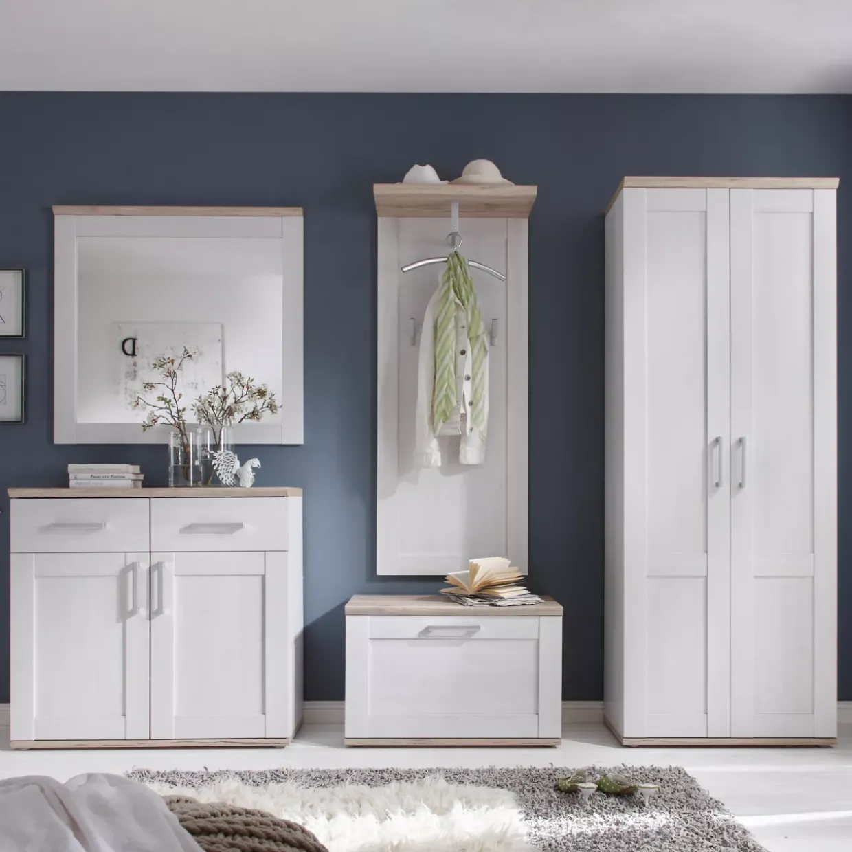 Durchdacht gestaltet, dient der Garderobenschrank als funktionales Möbelstück, das sowohl optisch als auch praktisch überzeugt. In einer Vielzahl von Wohnstilen integrierbar, erfüllt er die Ansprüche an zeitgemäßes Wohnen und bietet eine geschmackvolle Lösung für die Aufbewahrung von Jacken, Mänteln und Accessoires.