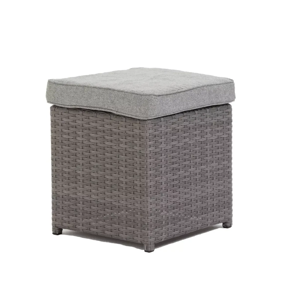 Eine besondere Note erhält der Gartenhocker durch seine Oberfläche aus Geflecht. Diese verleiht ihm nicht nur ein ansprechendes Äußeres, sondern auch eine angenehme Haptik. Die im Lieferumfang enthaltene Polsterung in Grau bietet zusätzlichen Sitzkomfort und passt optisch perfekt zum Gesamtbild. Doch nicht nur als Sitzgelegenheit überzeugt der Hocker: Die im Lieferumfang enthaltene Glasplatte verwandelt ihn im Handumdrehen in einen praktischen Beistelltisch.