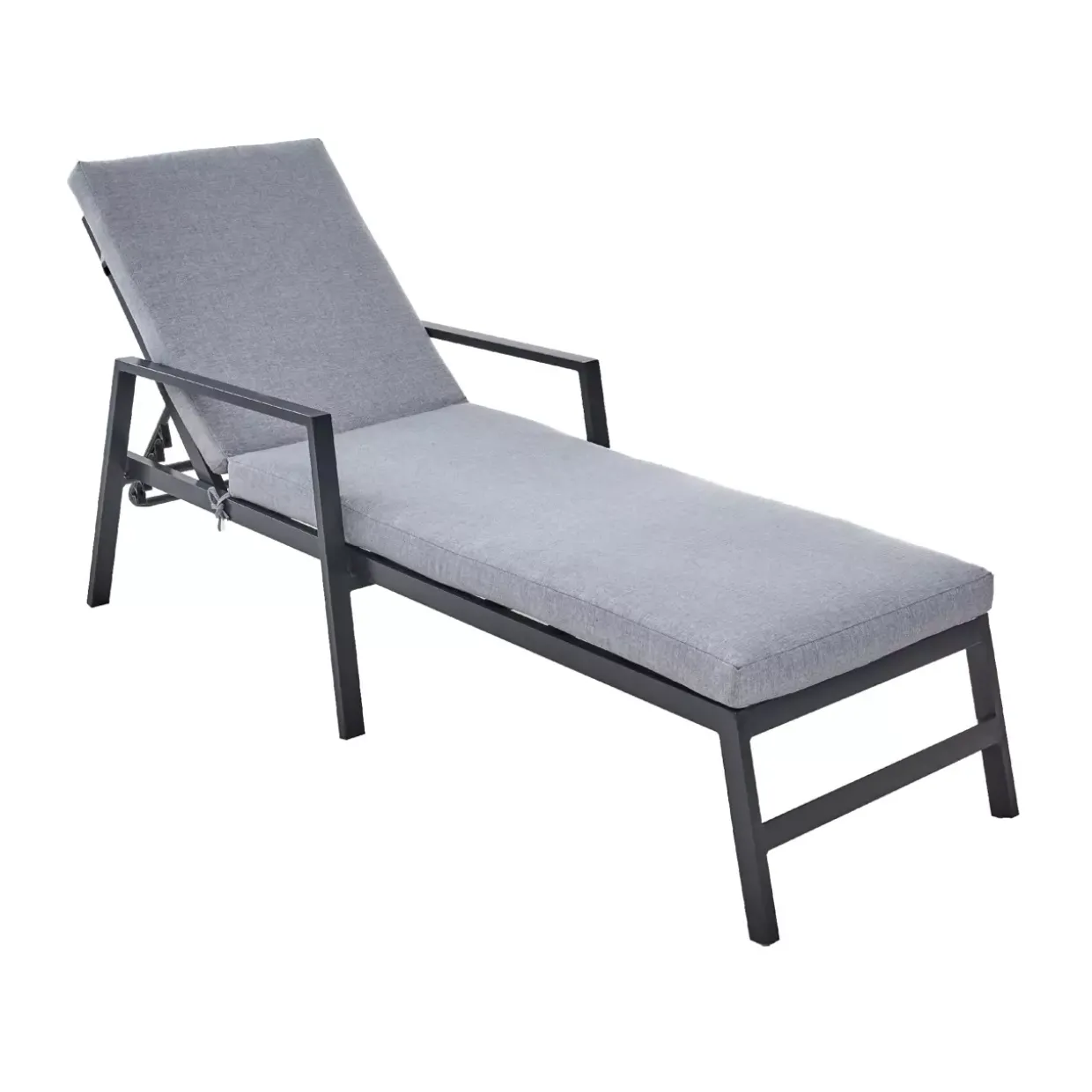 Eine besondere Aufmerksamkeit verdienen die hellgrauen Auflagekissen, die der Liege nicht nur Komfort, sondern auch einen stilvollen Kontrast verleihen. Die im Lieferumfang enthaltenen Kissen ergänzen das Gesamtbild und laden zu entspannten Stunden im Freien ein. Mit Armlehnen ausgestattet, bietet diese Gartenliege zusätzlichen Komfort und unterstützt eine entspannte Körperhaltung.