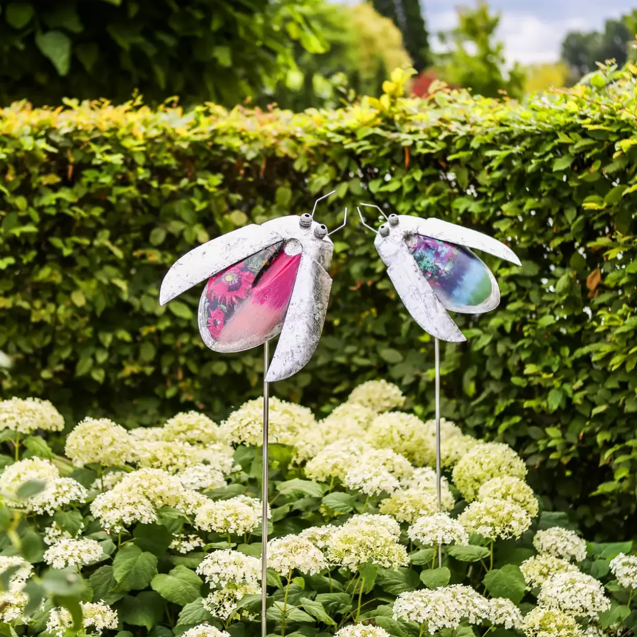 Farben spielen nicht nur eine dekorative Rolle, sondern beeinflussen auch die Atmosphäre eines Gartens. Die Kombination aus silbernen und blauen Tönen kann eine beruhigende Wirkung erzeugen und gleichzeitig einen Hauch von Frische vermitteln. Dieser Gartenstecker ist ideal, um subtile Farbakzente zu setzen, die harmonisch in Ihre bestehende Gartengestaltung integriert werden können.