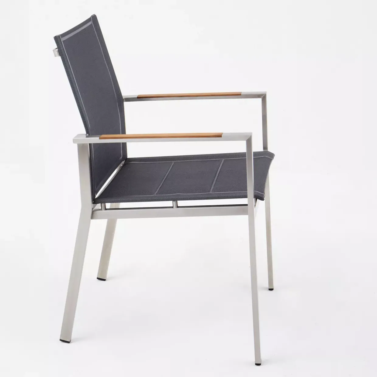 Mit einer Sitzschale und Rückenlehne aus Textilene bietet der Stuhl optimalen Komfort und ist gleichzeitig witterungsbeständig. Diese Materialien sind bekannt für ihre Atmungsaktivität und Pflegeleichtigkeit, was sie ideal für den Einsatz im Freien macht. Dank der Armlehnen können Sie sich bequem zurücklehnen und entspannen.