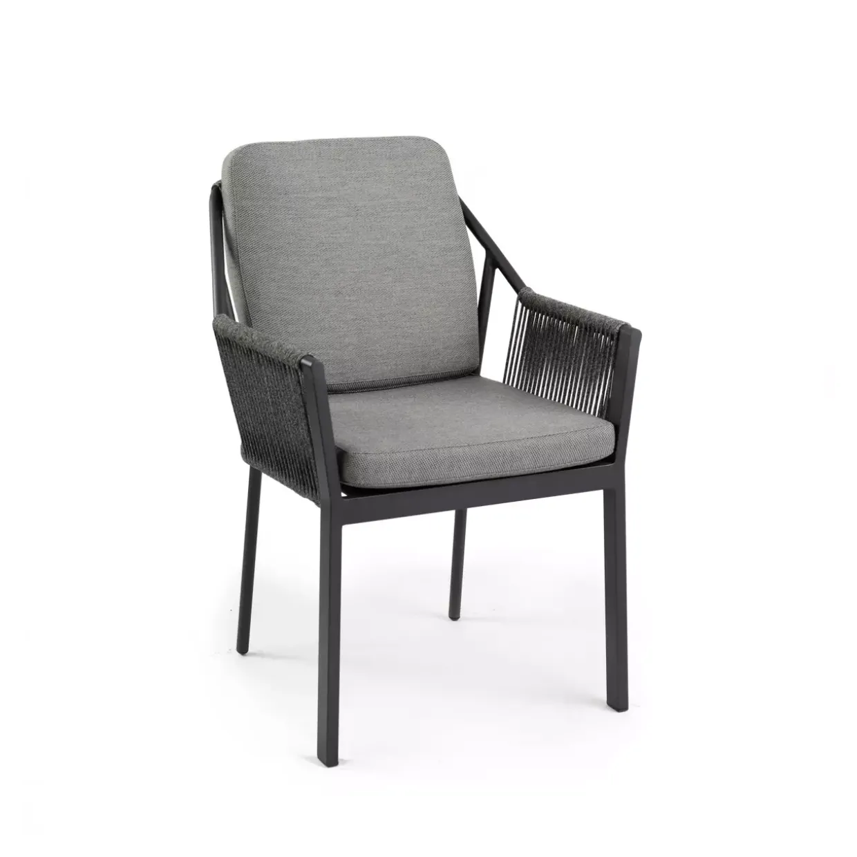Charcoal vereint Eleganz und Moderne in einem stilvollen Design. Der Gartenstuhl, gefertigt aus hochwertigem Aluminium, besticht nicht nur durch seine rostfreie Qualität, sondern auch durch seine Langlebigkeit. Dank der UV-beständigen Eigenschaften bleibt die Farbintensität erhalten und schützt das Material vor den Einflüssen der Sonne. Aluminium als Grundmaterial sorgt für Stabilität und Leichtigkeit. Die edle Kombination mit Olefin-Textilien bietet nicht nur einen komfortablen Sitz, sondern auch einen hohen Grad an Wetterbeständigkeit. Dies macht den Gartenstuhl ideal für den ganzjährigen Einsatz im Freien. Ein 4-Fußgestell verleiht dem Stuhl Stabilität und einen modernen Look. Dieser Gartenstuhl ist nicht nur ästhetisch ansprechend, sondern auch überaus praktisch: Die Stapelbarkeit erleichtert das Verstauen, wenn der Platz begrenzt ist oder Sie Ihren Außenbereich umgestalten möchten.Im modernen Stil entworfen, fügt sich der Liv Dining Chair Stackable Charcoal nahtlos in verschiedenste Gestaltungskonzepte ein, sei es auf der Terrasse, im Garten oder auf dem Balkon. Diese durchdachte Kombination aus Funktionalität und Design macht ihn zu einem vielseitigen Begleiter für entspannte Stunden im Freien.