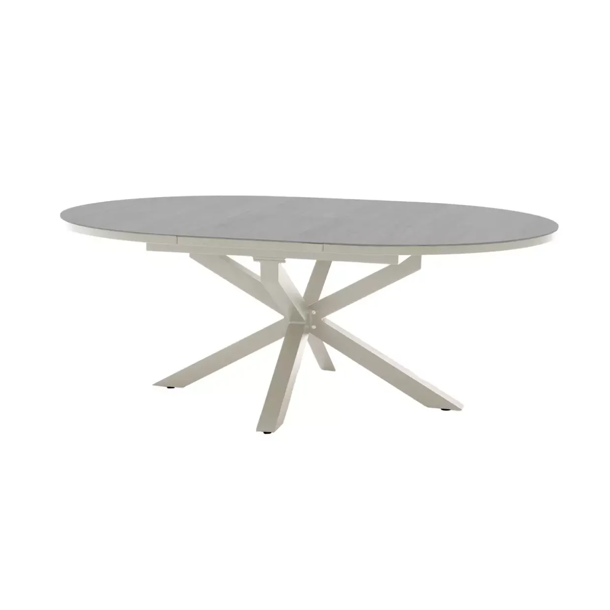 ausziehbar – camel -; Größe: O 145/199x145x75cm; Tischplatte : T6mm gesinterter Stein, beige; Rahmen: 65306;50x15x1.2mm, 30x20x1.2mm, 40x20x1.2mm, 70x70x1.5mm; Pulverbeschichtung in matt camel