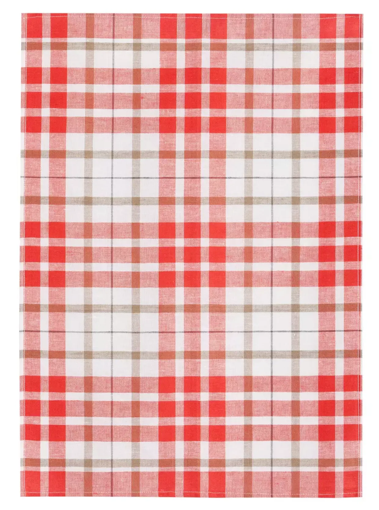 Ein modernes Geschirrtuch mit Blockstreifen-Design bringt frischen Wind in Ihre Küche. Die harmonische Kombination aus Baumwolle und Leinen verleiht dem Tuch nicht nur eine besondere Haptik, sondern auch eine hervorragende Saugfähigkeit. Die rote Farbe sorgt für einen lebendigen Akzent, während das Karo-Muster dem Geschirrtuch eine zeitlose Eleganz verleiht.
