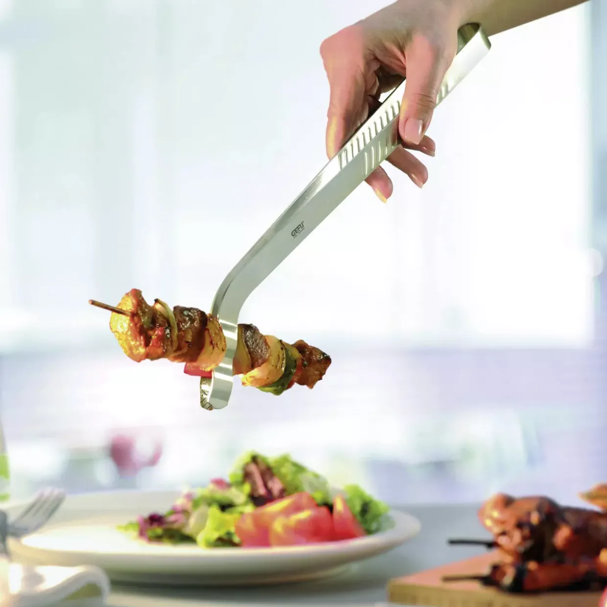 Edelstahl als Materialwahl verleiht der Grillzange Modell Onda eine elegante und moderne Anmutung. Diese Grillzange, stilvoll in Silber gehalten, ist ein unverzichtbares Werkzeug für alle, die das ganze Jahr über grillen möchten. Die ausgewogene Federkraft in Kombination mit der exakten Kraftübertragung auf die Zangenenden sorgt für eine optimale Handhabung, ob am Grill oder bei Tisch.