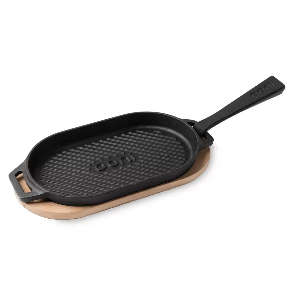 Die Funktionalität der Ooni Grizzler-Pfanne wird durch ihre Handhabung ergänzt. Der ergonomisch geformte Griff aus Holz liegt angenehm in der Hand und bleibt auch bei hohen Temperaturen kühl. So ist eine sichere und komfortable Nutzung gewährleistet.