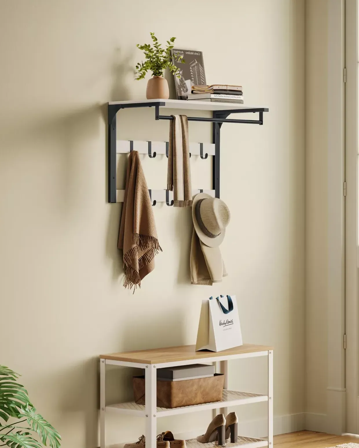 Ein vielseitiges Design macht diese Hängegarderobe zu einem unverzichtbaren Bestandteil jedes Eingangsbereichs. Sie bietet ausreichend Platz für Jacken, Mäntel und Accessoires, ohne dabei den Raum zu überladen. Praktisch und stilvoll zugleich, findet dieses Möbelstück in unterschiedlichsten Räumlichkeiten seinen Platz.