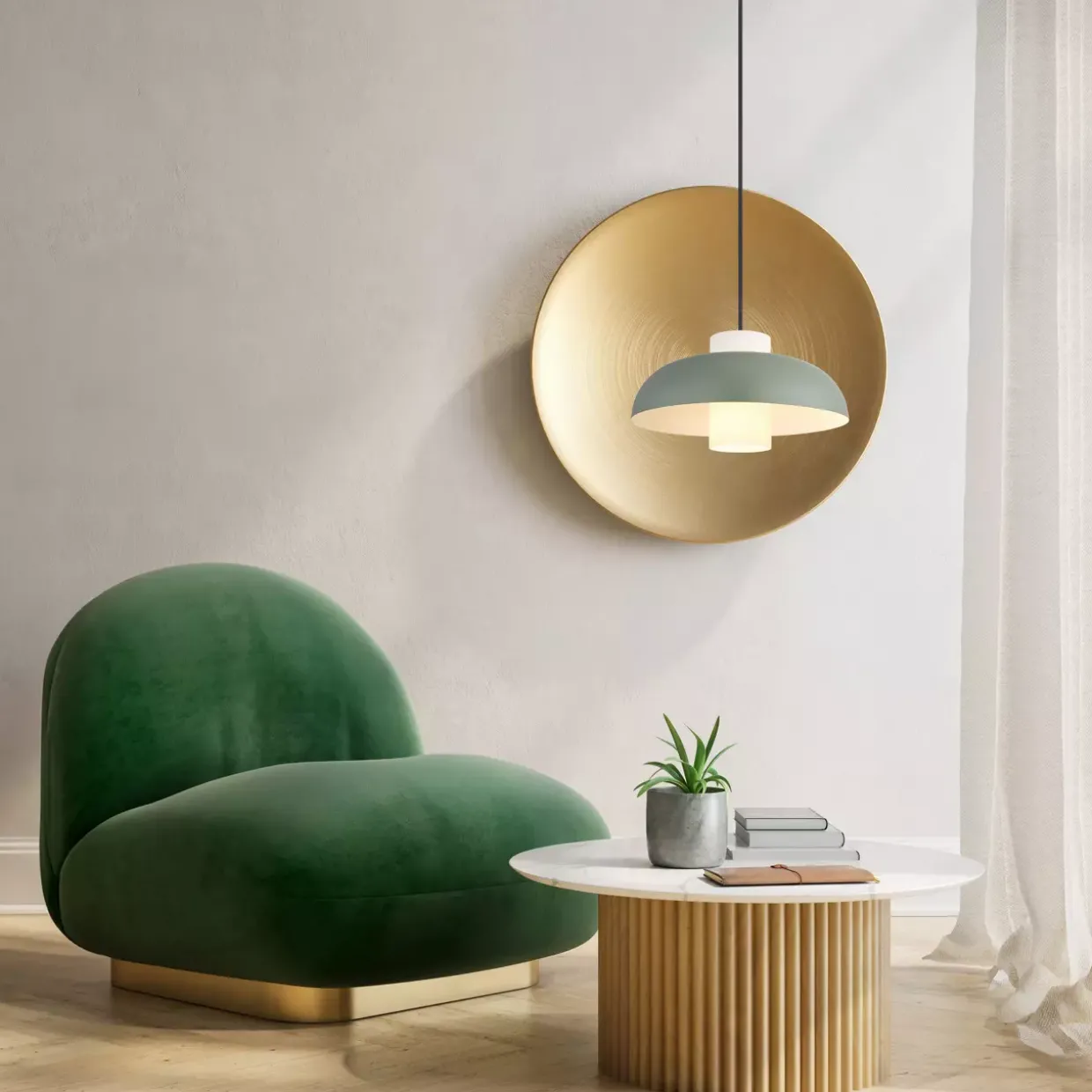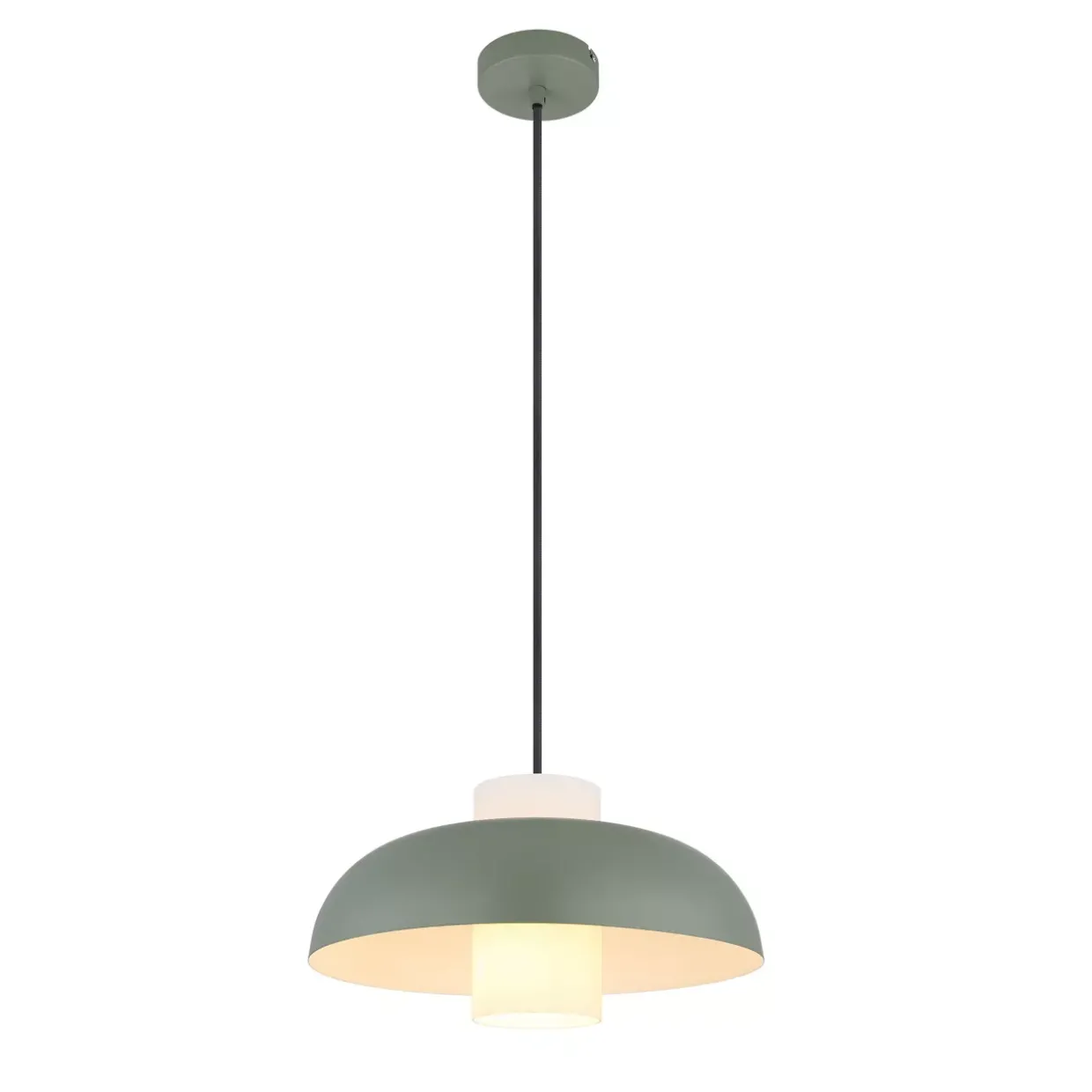 Ein Hauch von Modernität zieht mit der Pendelleuchte in Ihr Zuhause ein. Die Kombination aus metallgrünem Finish und opalweißem Glas verleiht dem Raum eine harmonische und zugleich stilvolle Atmosphäre. Mit einem Durchmesser von 38 cm eignet sich diese Hängeleuchte hervorragend für Esstische oder größere Wohnbereiche.