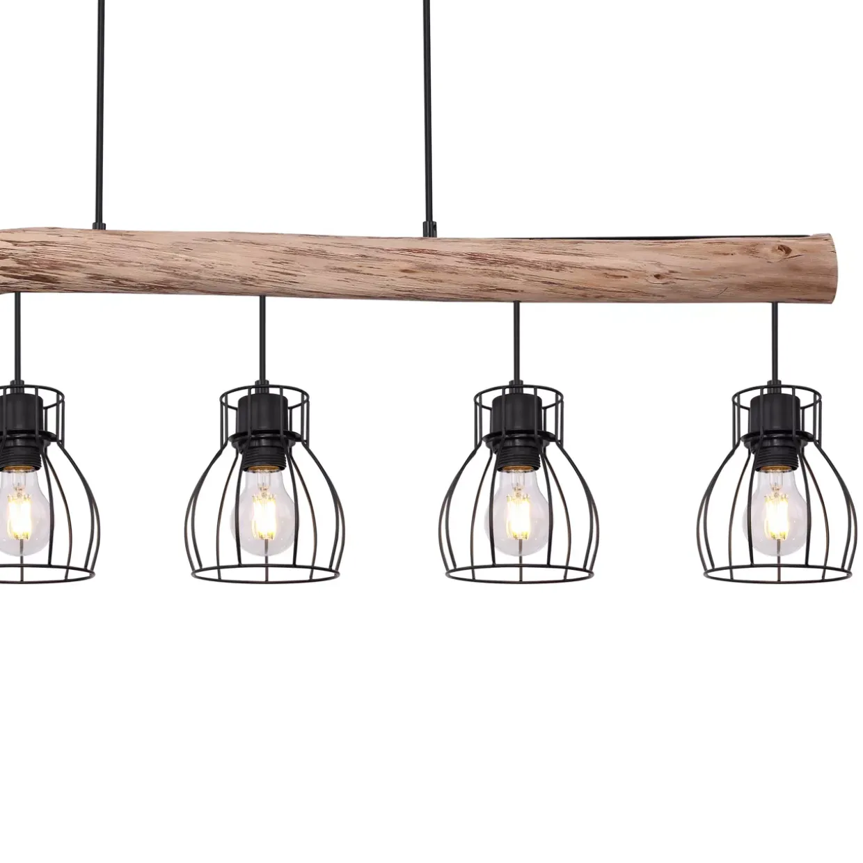 Hängeleuchte Metall schwarz, Holz naturfarben, Metall schwarz, Kabel PVC Schwarz, LxBxH: 1040x136x1400mm, exkl. 5x E27 40W 230V