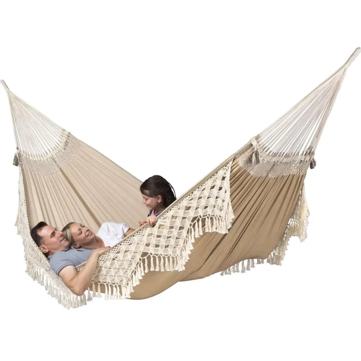 Baumwolle, als Textilart gewählt, bietet ein atmungsaktives und langlebiges Material, das Ihnen ein angenehmes Liegegefühl garantiert. Die Hängematte, gefertigt aus hochwertigem Textil, ist sowohl robust als auch pflegeleicht. Der natürliche Farbton unterstreicht die moderne Ästhetik und sorgt für eine beruhigende Atmosphäre.