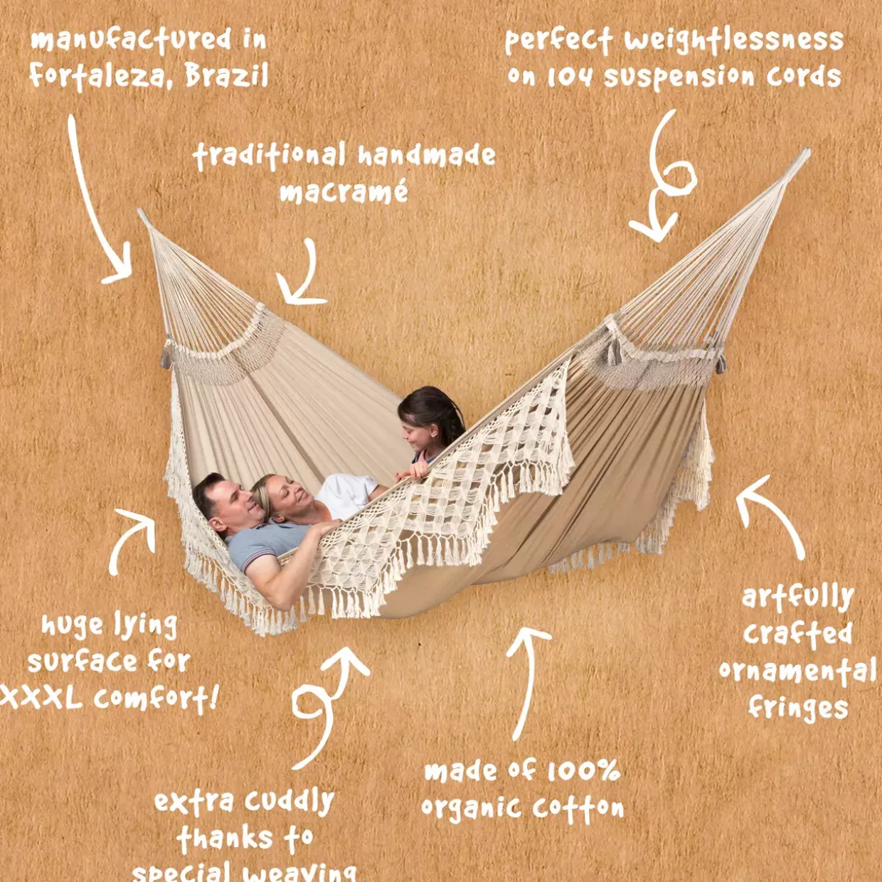 Bossanova – ein Name, der für moderne Eleganz steht. Diese Hängematte beeindruckt mit ihrem schlichten, natürlichen Stil und fügt sich harmonisch in jedes Ambiente ein. Das Modell Bossanova ist eine Symbiose aus Komfort und Design, die zum Entspannen einlädt.