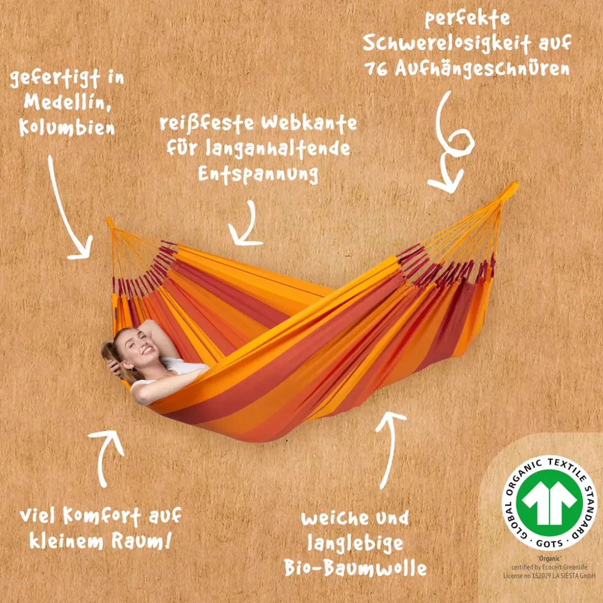 Gewicht: 1.2 Kg Farbton: volcano Größe: 300x140cm Stil: Modern Textilart: Baumwolle 100% Material: Textil bestehend aus: 1 Hängematte Highlights