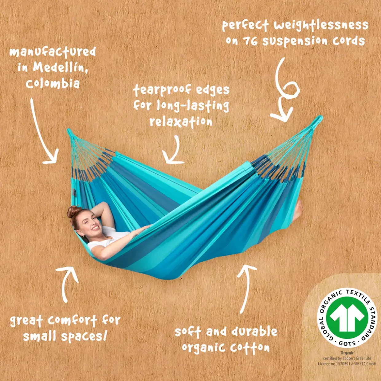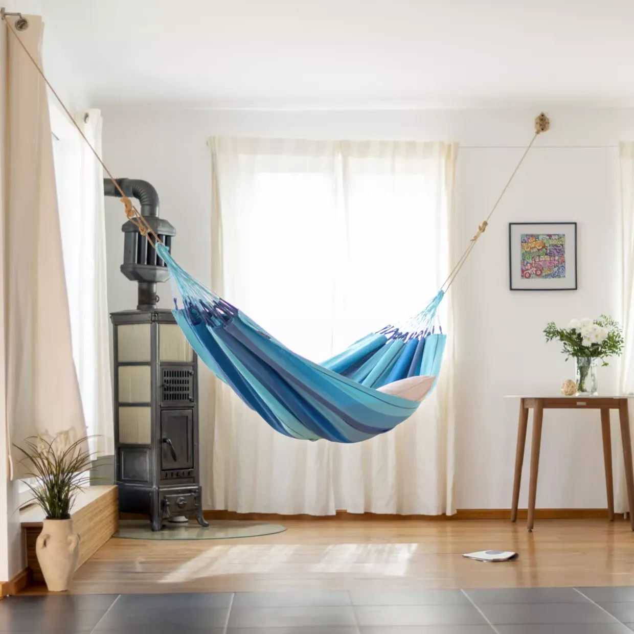 Ein bemerkenswertes Detail ist das geringe Gewicht von nur 1,2 kg, das den Transport und die Handhabung der Hängematte besonders einfach macht. Ob im Garten, auf der Terrasse oder im Innenbereich, das Modell Modesta überzeugt durch seine Vielseitigkeit und Benutzerfreundlichkeit. Die sorgfältige Verarbeitung sorgt für eine lange Haltbarkeit, während das angenehme Material höchsten Komfort garantiert.