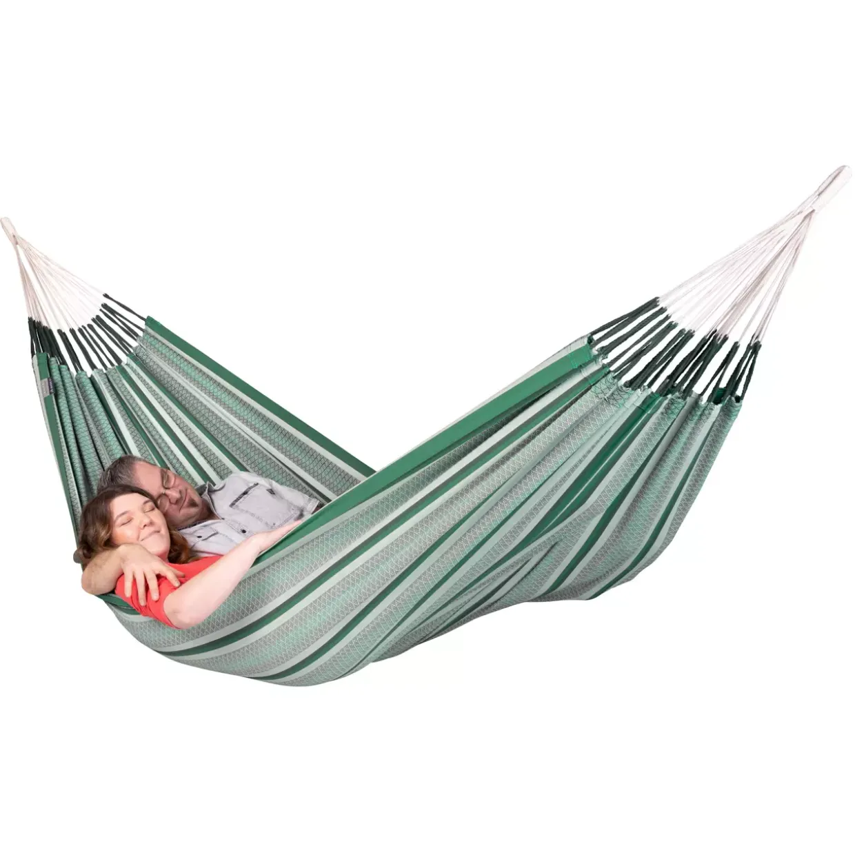 Die Doppelhängematte Modesta bietet ausreichend Platz, um sich entspannt zurückzulehnen und die Seele baumeln zu lassen. Sie ist ideal für den Garten oder die Terrasse und schafft einen Rückzugsort, an dem Sie sich vom Alltag erholen können. Dank des modernen Stils fügt sie sich harmonisch in verschiedenste Umgebungen ein und wird schnell zu einem Blickfang.