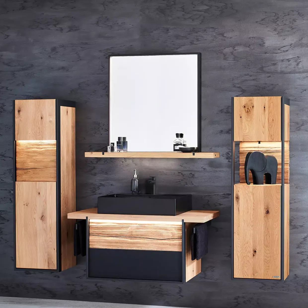 Wildeiche massiv und Eisenglimmer vereinen sich in einem modernen Design, das den Steel Hängeschrank zu einem stilvollen Highlight in jedem Raum macht. Das Zusammenspiel aus Holz und Metall verleiht diesem Möbelstück nicht nur Stabilität, sondern auch eine zeitlose Eleganz.