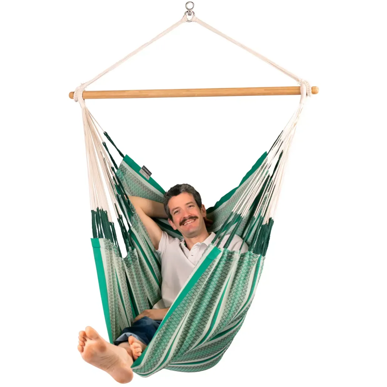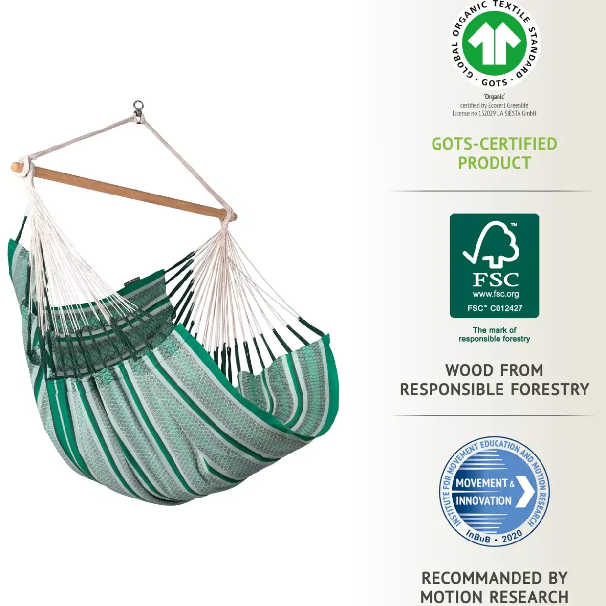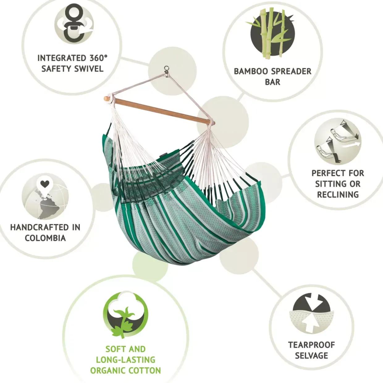 Der Habana Hängesessel in der erfrischenden Farbe Agave ist ein moderner Rückzugsort für Momente der Entspannung. Aus hochwertiger Baumwolle gefertigt, bietet das Textilmaterial eine angenehme Haptik und Langlebigkeit, die Ihnen viele Jahre Freude bereiten wird.