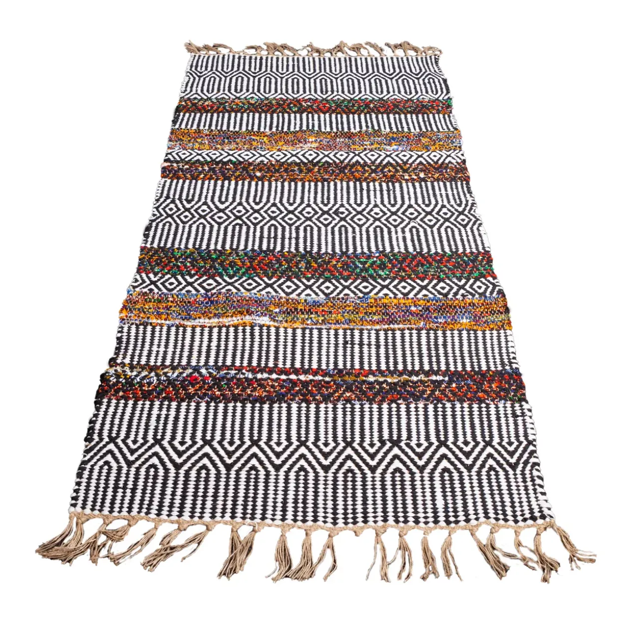Handgewebt Größe: 70x130cm Farbton: bunt Flächengewicht: 1950 g/qm Textilart: Baumwolle 60% / Jute 40% Naturfaser: Anteil Baumwolle 60% / Anteil Jute 40% Stil: Modern Material: Textil Florhöhe: 10 mm Zertifikate: Care und Fair bestehend aus: 1 Teppich Gewebeart: Flachgewebe Besonderheiten: für Fußbodenheizung geeignet chemische Reinigung Highlights