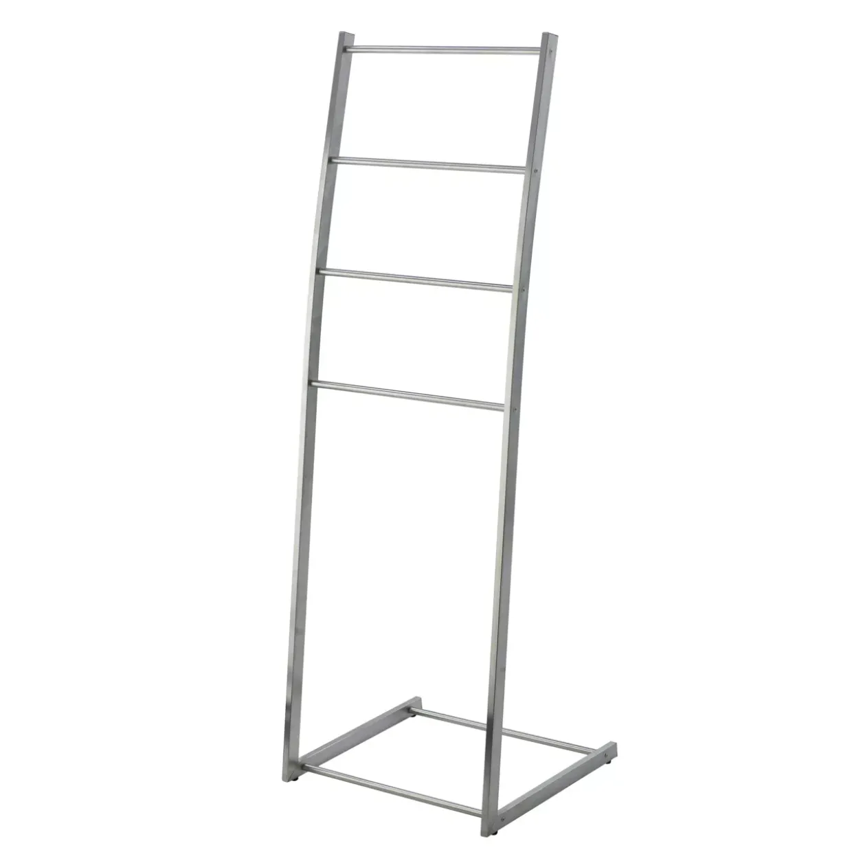 Gebürstete Oberflächen verleihen dem Ingrid Handtuchständer eine elegante und zeitgemäße Ästhetik. Dieses stilvolle Modell ist ein perfekter Begleiter für moderne Badezimmer. Gefertigt aus hochwertigem Edelstahl, bietet es nicht nur Langlebigkeit, sondern auch eine ansprechende Optik, die sich nahtlos in verschiedene Einrichtungsstile einfügt.Die vier Sprossen des Handtuchständers bieten ausreichend Platz, um Handtücher ordentlich und übersichtlich zu arrangieren. Durch die stabile Konstruktion aus Metall gewährleistet das Modell eine hohe Belastbarkeit, ohne dabei an Leichtigkeit zu verlieren. Ein Hauch von Luxus zieht mit diesem Accessoire in Ihr Badezimmer ein, während es gleichzeitig einen praktischen Nutzen bietet.Silberne Akzente setzen elegante Highlights und unterstreichen den modernen Stil des Handtuchständers. Die gebürstete Oberfläche verleiht dem Edelstahl eine matte, edle Anmutung, die pflegeleicht ist und gegen Fingerabdrücke unempfindlich bleibt. So bleibt das Erscheinungsbild stets makellos und ansprechend.Insgesamt verbindet der Ingrid Handtuchständer Funktionalität mit stilvollem Design und ist eine hervorragende Wahl für jedes Bad, das Wert auf Qualität und modernes Ambiente legt. Diese Kombination aus Form und Funktion macht ihn zu einem unverzichtbaren Element in Ihrem Zuhause.