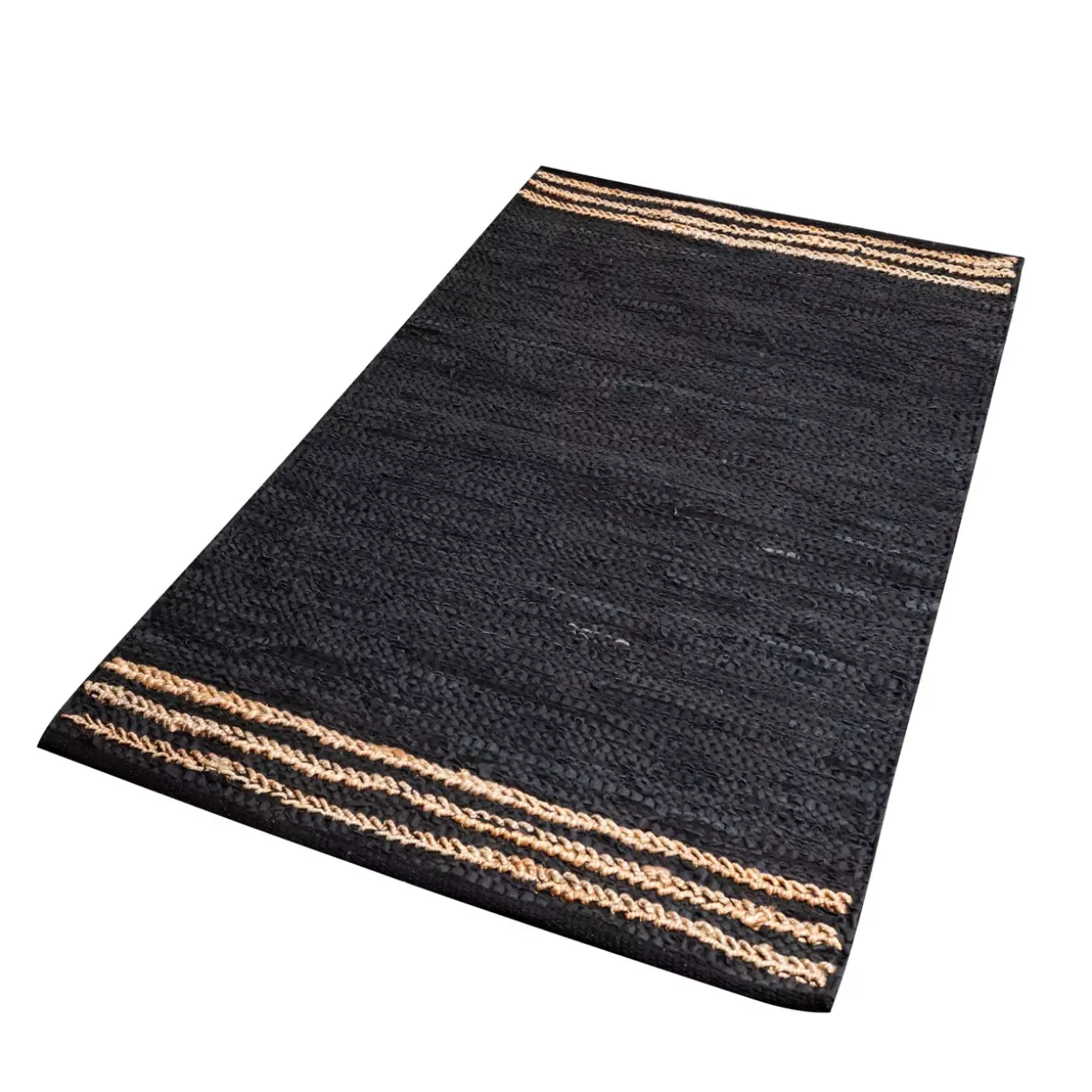 Handgewebt Farbton: schwarz Größe: 70x130cm Stil: Modern Material: Textil / Leder Florhöhe: 10 mm Flächengewicht: 2500 g/qm Zertifikate: Care und Fair bestehend aus: 1 Teppich Gewebeart: Flachgewebe Naturfaser: Anteil Leder 80% / Anteil Jute 20% Besonderheiten: für Fußbodenheizung geeignet Textilart: Jute 20% chemische Reinigung Highlights