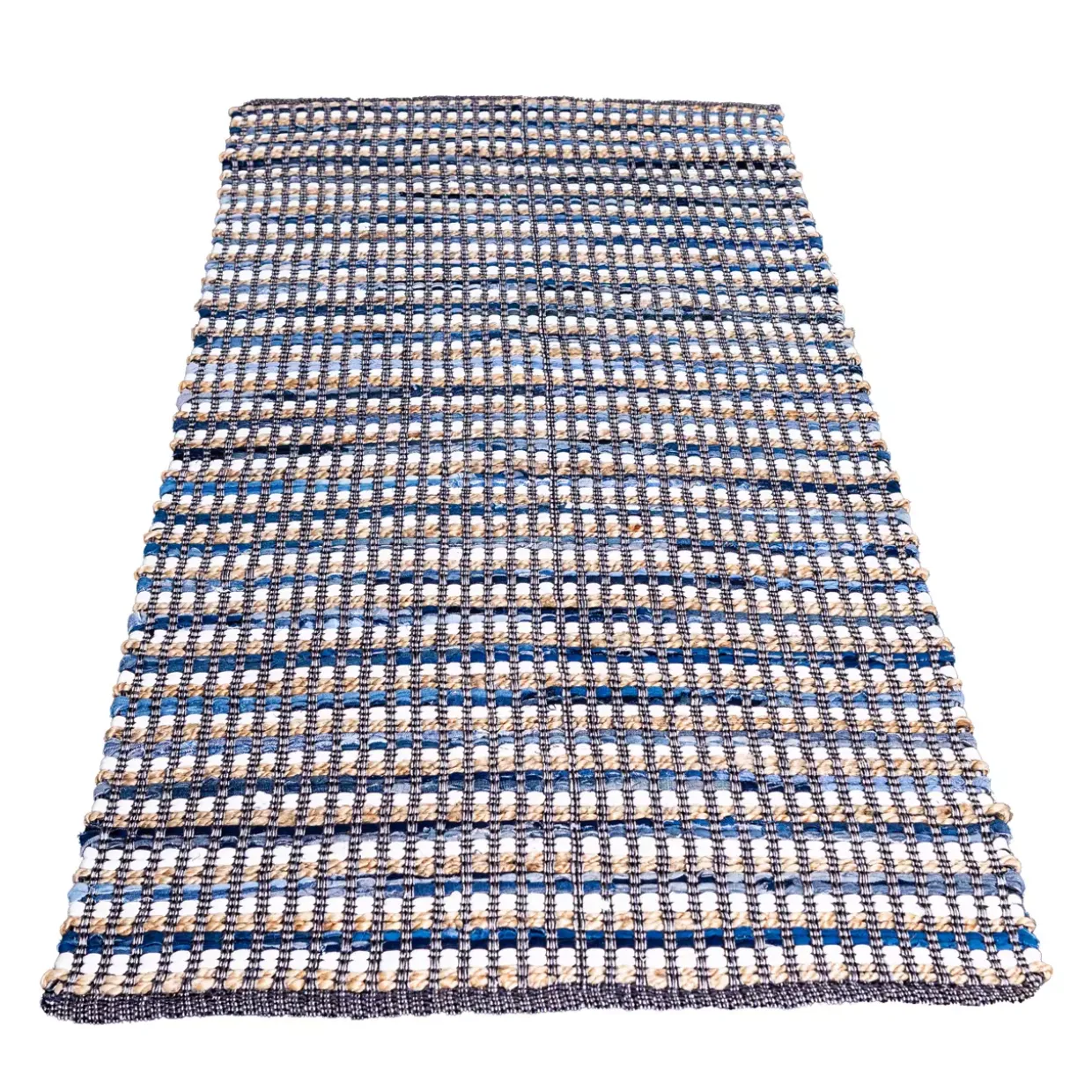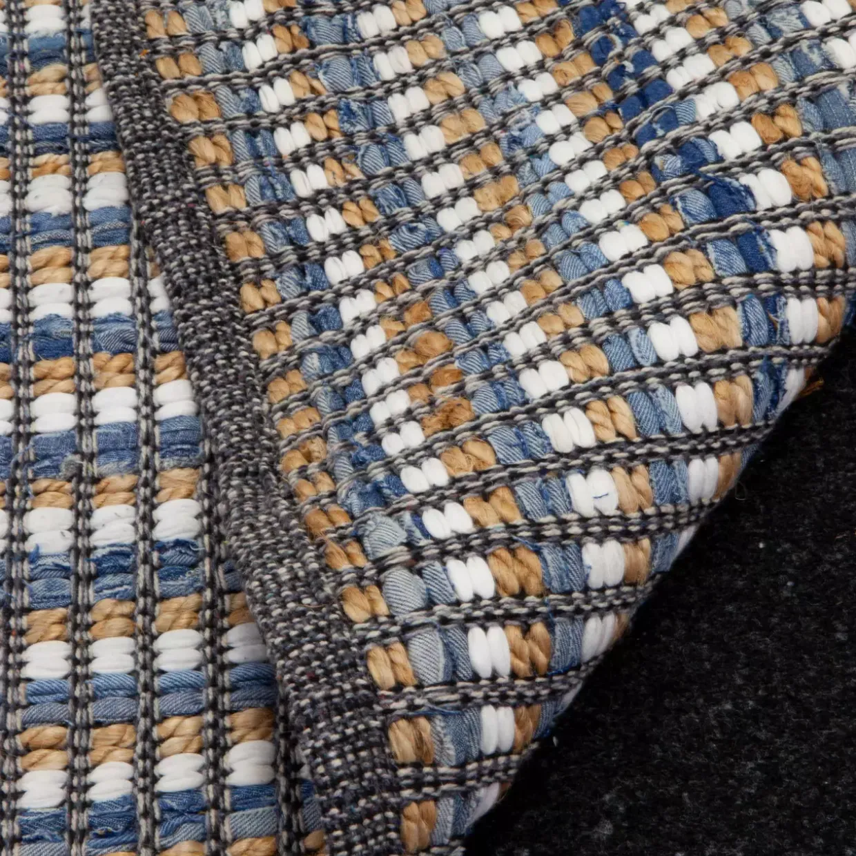 Handwebteppich Größe: 60x90cm Farbton: beige / dunkelblau Stil: Modern Textilart: Baumwolle 40% / Polyester 30% / Jute 30% Flächengewicht: 2050 g/qm Naturfaser: Baumwolle 40% / Jute 20% Material: Textil Florhöhe: 10 mm Zertifikate: Care und Fair bestehend aus: 1 Teppich Gewebeart: Flachgewebe Besonderheiten: für Fußbodenheizung geeignet / strapazierfähig Synthetikfaser: Polyester 40% chemische Reinigung Highlights