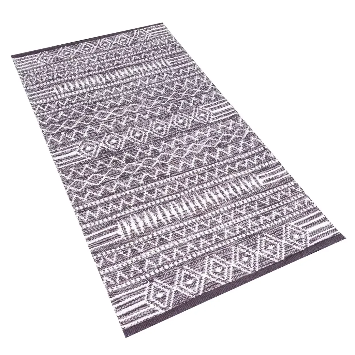 Handgewebt Größe: 70x130cm Farbton: grau Stil: Modern Naturfaser: Baumwolle / Anteil Baumwolle 70% Textilart: Polyester 30% / Baumwolle 70% Material: Textil Zertifikate: Care und Fair bestehend aus: 1 Teppich Synthetikfaser: Polyester / Anteil Polyester 30% Gewebeart: Flachgewebe Flächengewicht: 1250 g/qm Florhöhe: 6 mm chemische Reinigung Highlights