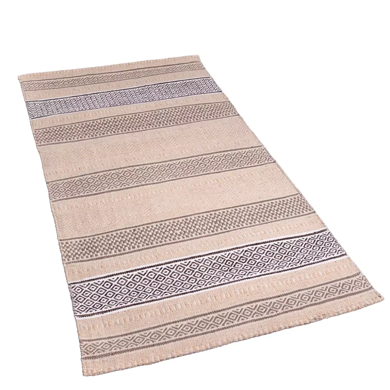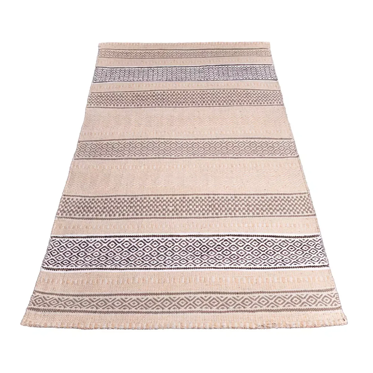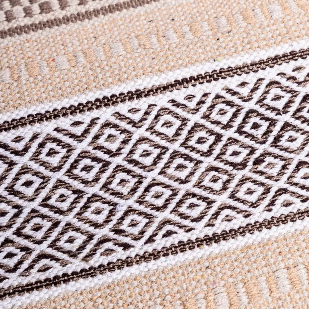 Handgewebt Größe: 70x130cm Farbton: bunt Textilart: Baumwolle 60% / Polyester 40% Naturfaser: Baumwolle 60% Stil: Modern Material: Textil Zertifikate: Care und Fair bestehend aus: 1 Teppich Gewebeart: Flachgewebe Florhöhe: 5 mm Flächengewicht: 2450 g/qm Besonderheiten: für Fußbodenheizung geeignet chemische Reinigung Highlights