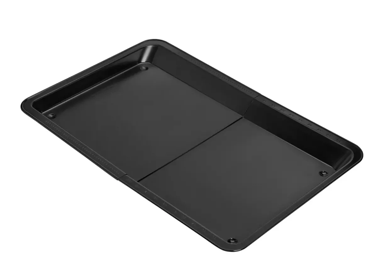 Ein weiteres Highlight ist die schnittfeste Antihaft-Email-Oberfläche, die nicht nur die Wärme besonders gut leitet, sondern auch Temperaturen bis zu 450 Grad standhält. So können Sie auch bei großer Hitze backen und braten, ohne sich Sorgen um Schäden am Blech zu machen. Dank der Antihaftbeschichtung können Sie direkt auf dem Blech schneiden, ohne Kratzer zu hinterlassen.