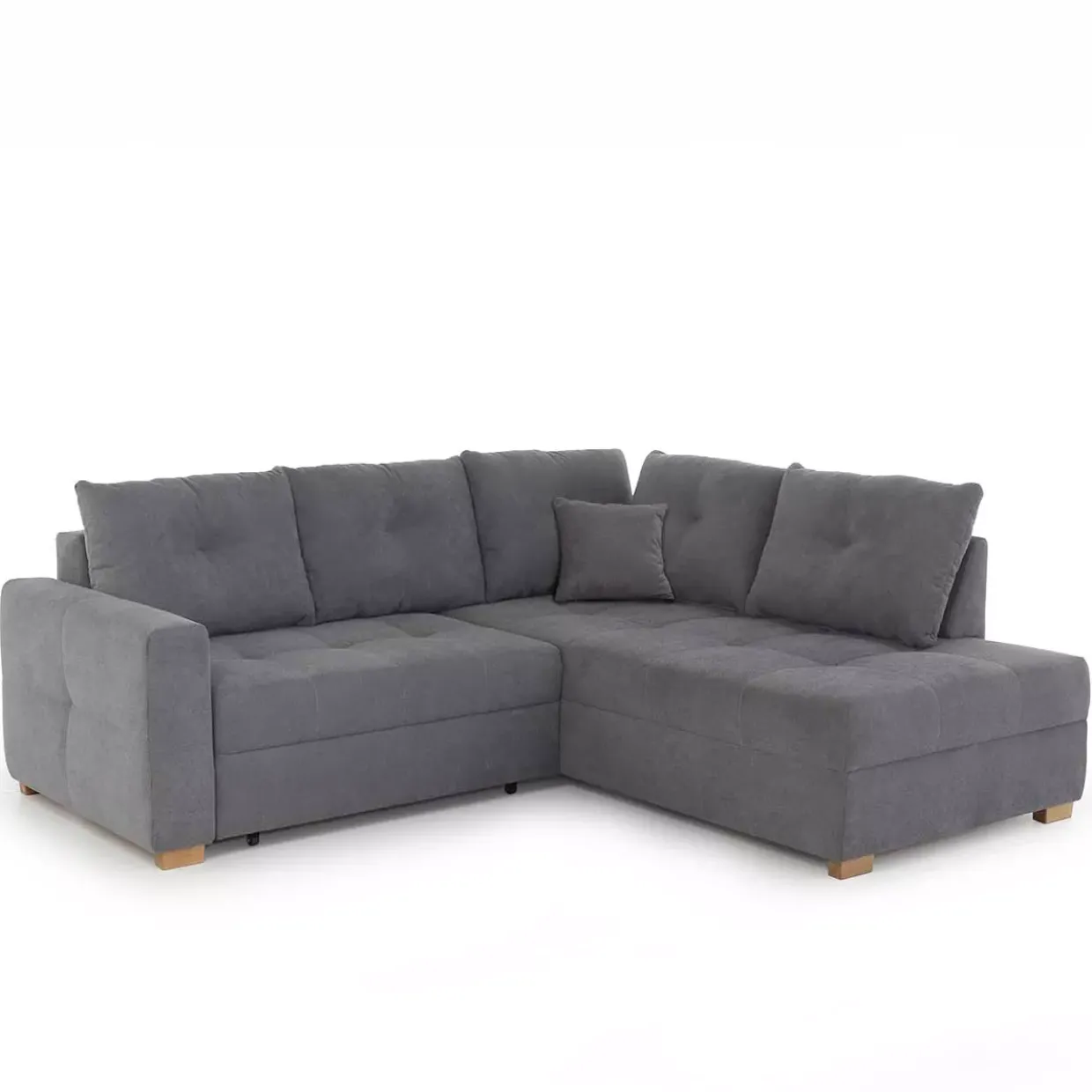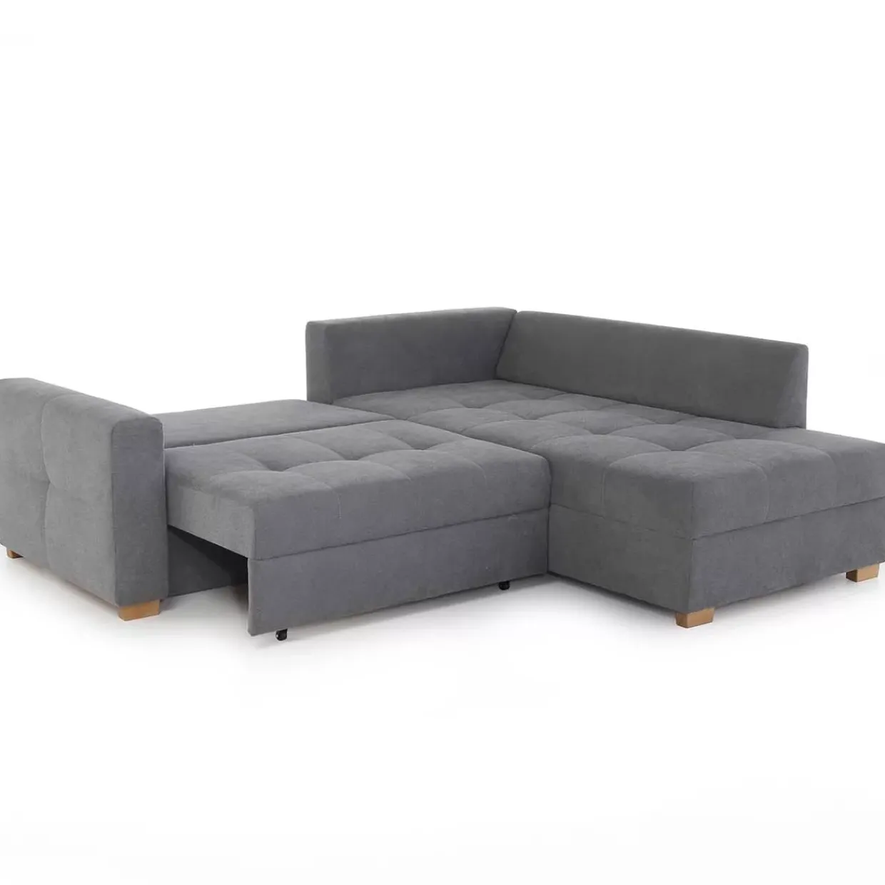 Mit dem inkludierten Bettkasten bietet die Garnitur praktischen Stauraum für Kissen und Decken, was sowohl Ordnung als auch Komfort gewährleistet. Der hochwertige Stoffbezug sorgt nicht nur für ein angenehmes Sitzgefühl, sondern ist auch pflegeleicht und langlebig. Die Rückenlehne ist vollständig bezogen, was die Polstergarnitur von allen Seiten ansprechend wirken lässt und flexible Raumgestaltungen ermöglicht.