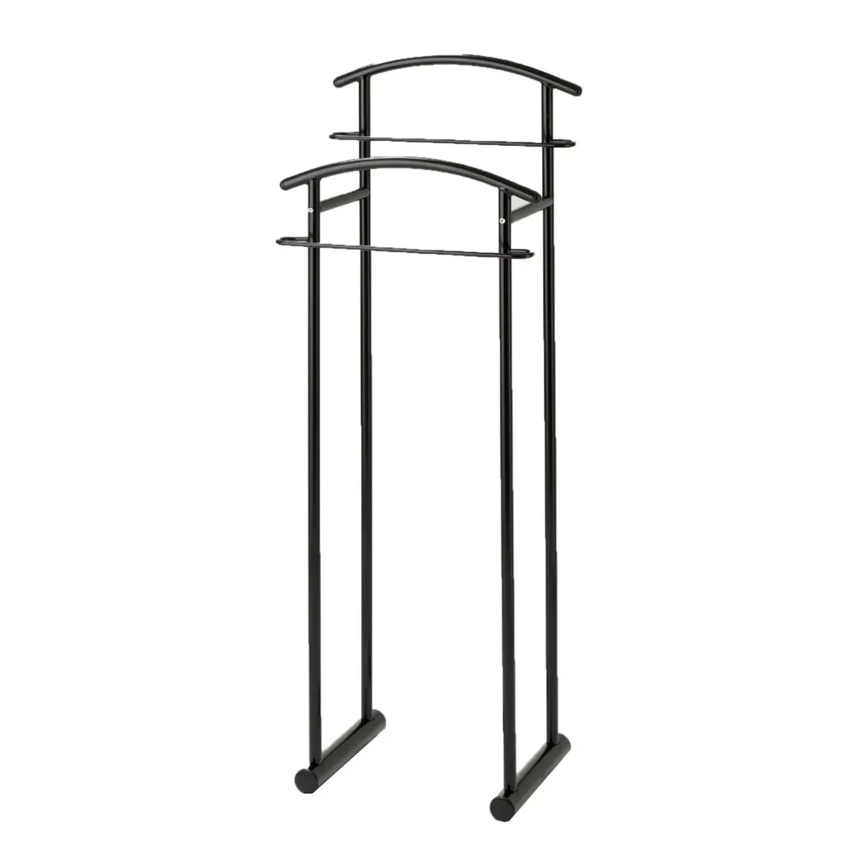 Schwarz ist die Farbe der Eleganz und des zeitlosen Designs – und genau das bietet dieser Herrendiener. In einem modernen Stil gehalten, fügt sich das Modell Jürgen nahtlos in jede zeitgemäße Einrichtung ein. Nicht nur die Optik überzeugt, sondern auch das robuste Material: Metall verleiht dem Herrendiener eine besondere Stabilität und Langlebigkeit.
