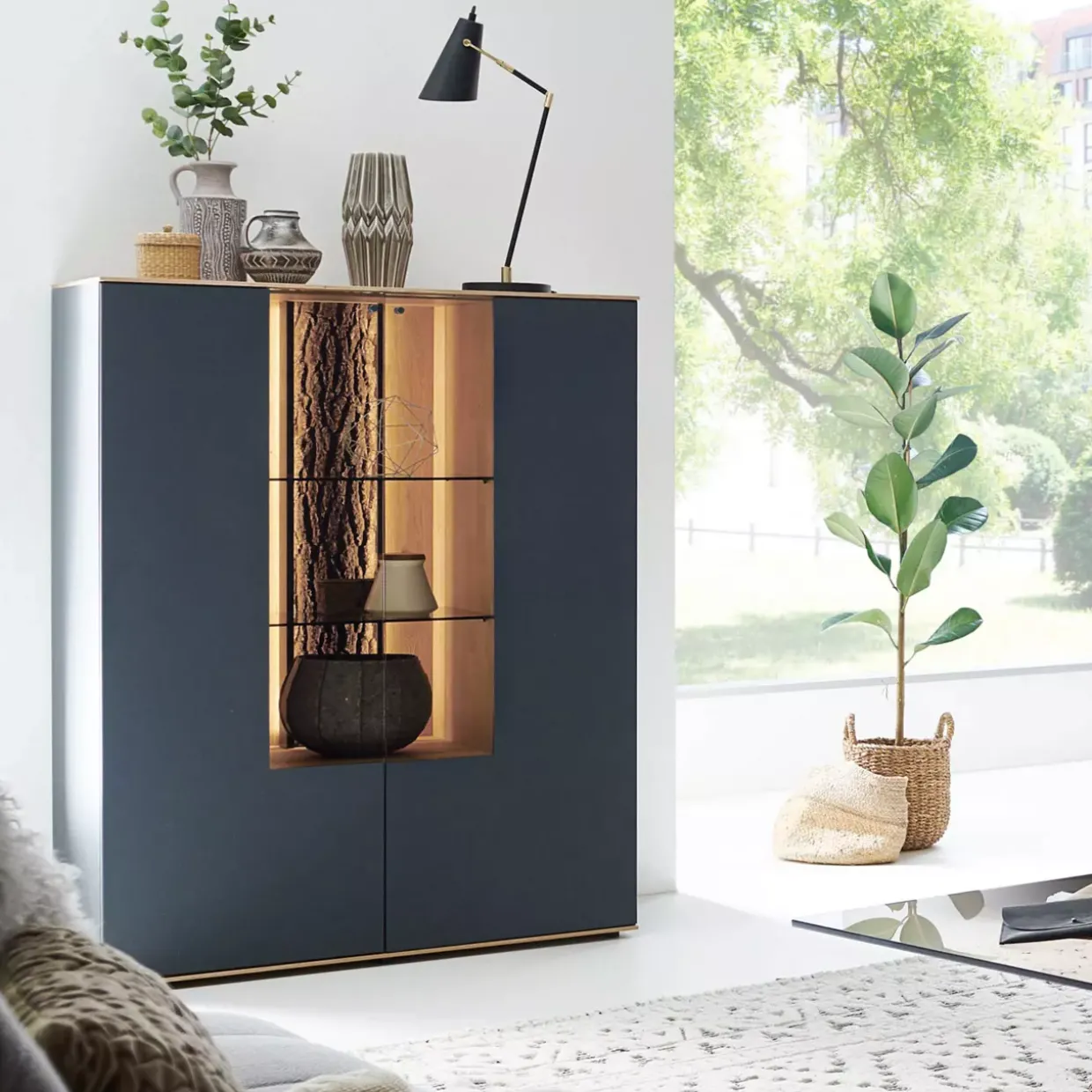 Das moderne Erscheinungsbild des Highboards passt sich mühelos verschiedenen Einrichtungsstilen an und wird so zum Highlight in jedem Raum. Die sorgfältig ausgewählten Materialien und die präzise Verarbeitung unterstreichen den hohen Qualitätsanspruch dieses Möbelstücks.