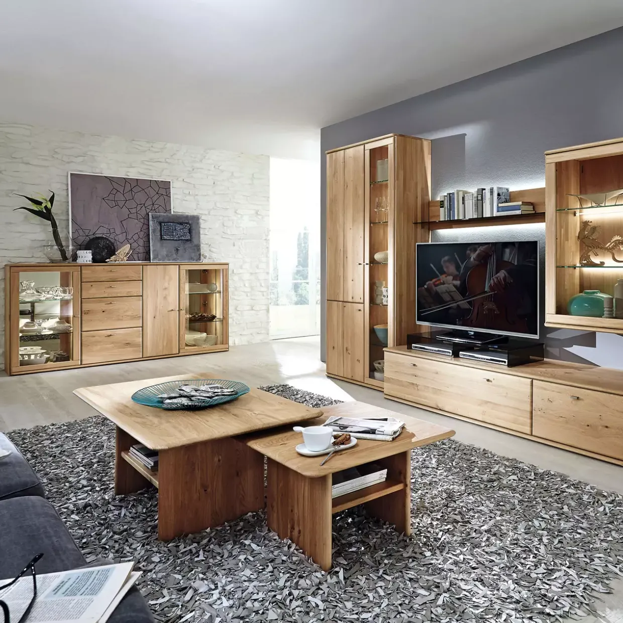 Eine passende Beleuchtung kann gegen Mehrpreis hinzugefügt werden, was dem Abando Highboard eine individuelle Note verleiht und die Schönheit der Wildeiche besonders zur Geltung bringt. Diese Beleuchtungsoption ermöglicht es Ihnen, Ihre Räume in ein angenehmes Licht zu tauchen und eine stimmungsvolle Atmosphäre zu kreieren.