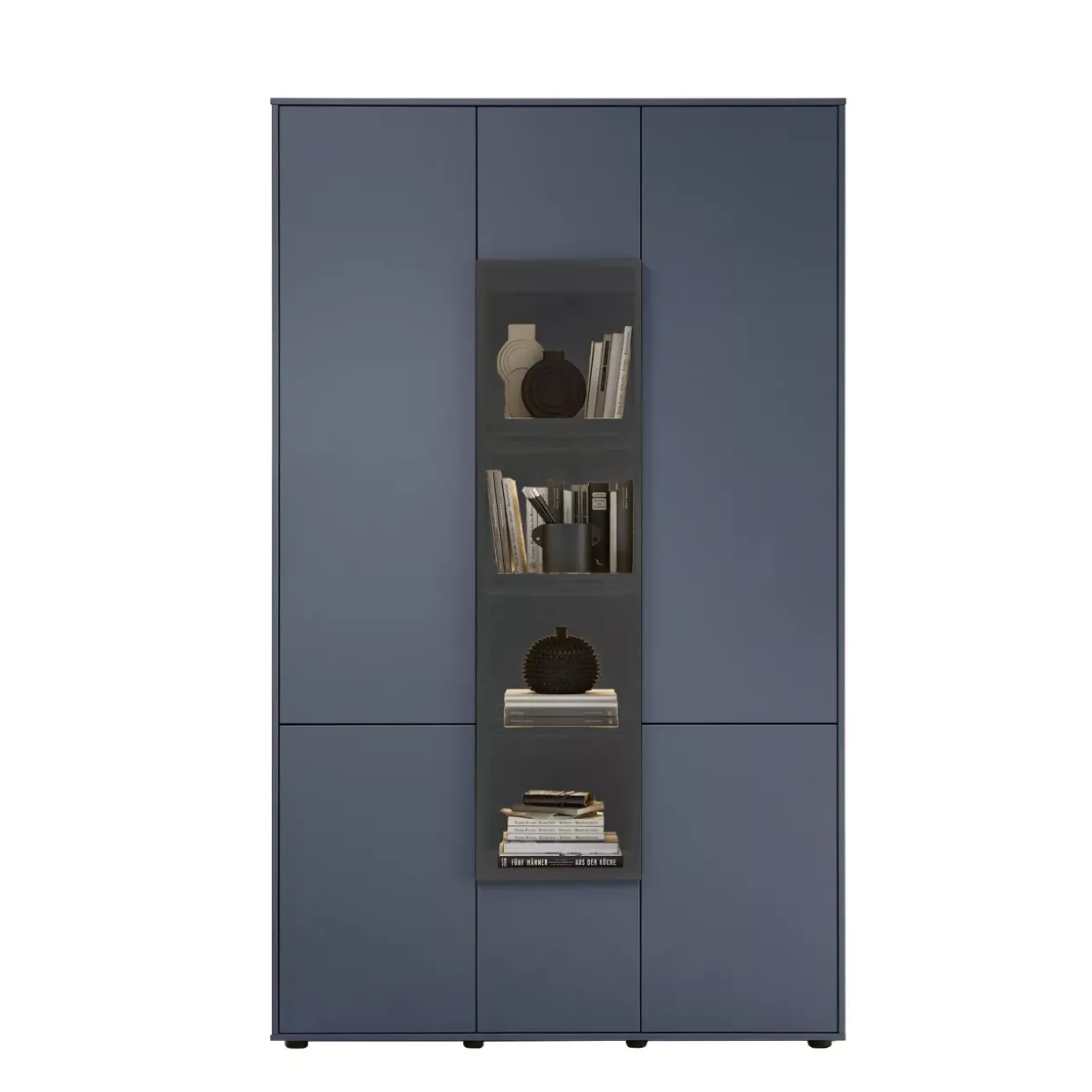 Das Nischenelement mit vier offenen Fächern in schiefergrau setzt moderne Akzente und bietet gleichzeitig praktischen Stauraum. Das Highboard präsentiert sich in einem eleganten Lack-Design, das sowohl in atlantikblau als auch in einer stilvollen Kombination aus atlantikblau und schiefergrau erhältlich ist. Diese Farbvariationen verleihen dem Möbelstück eine zeitgemäße Eleganz.