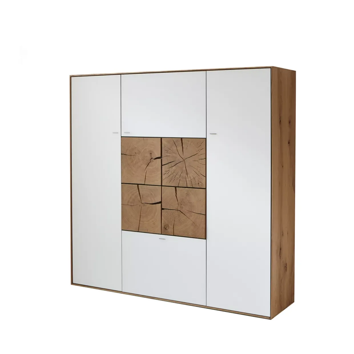 Kerneiche Umato massiv und gebürstet – ein Material, das in der modernen Einrichtung seinen festen Platz hat. Das Caya Highboard vereint diese elegante Holzart mit edlen Glasapplikationen aus weißem Mattglas zu einem harmonischen Gesamtbild. Diese Kombination aus Glas und Holz verleiht dem Möbelstück einen zeitlosen Charme, der sich in jedes anspruchsvolle Wohnkonzept einfügt.