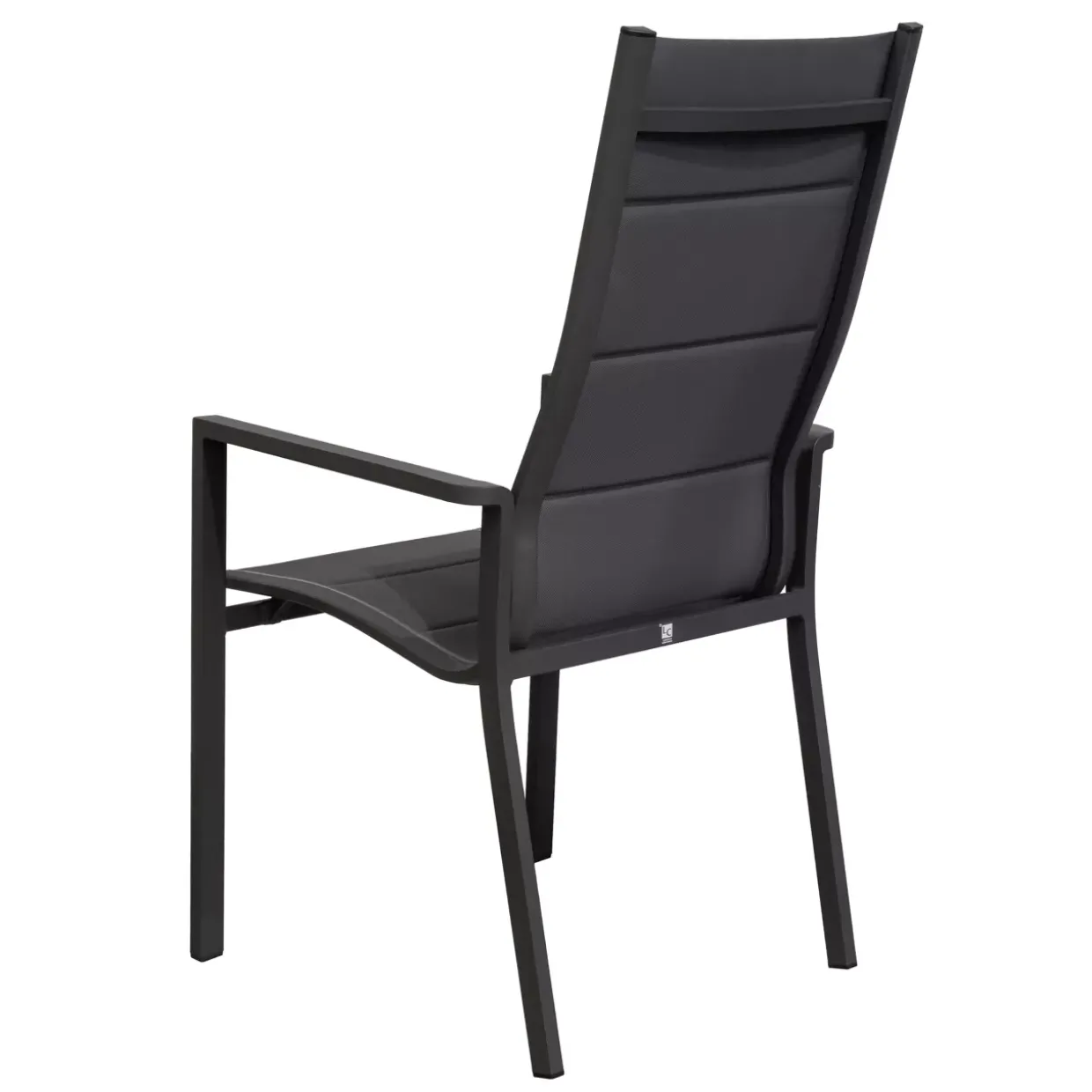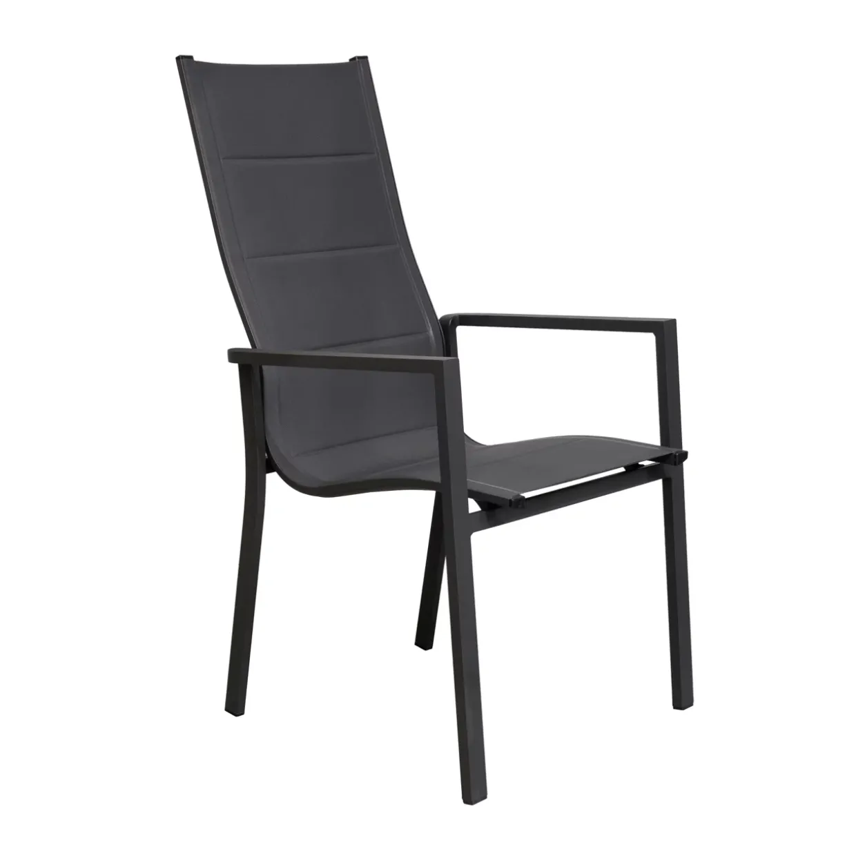 Sitz- und Rückenlehne aus Textilene, gepolstert; Farbe: anthrazit; Gestell: Aluminium, anthrazit; stapelbar